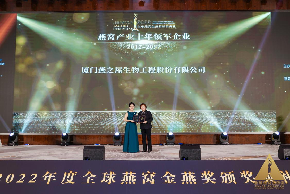 圖:燕之屋榮獲燕窩產(chǎn)業(yè)十年領(lǐng)軍企業(yè)(2012年-2022年)