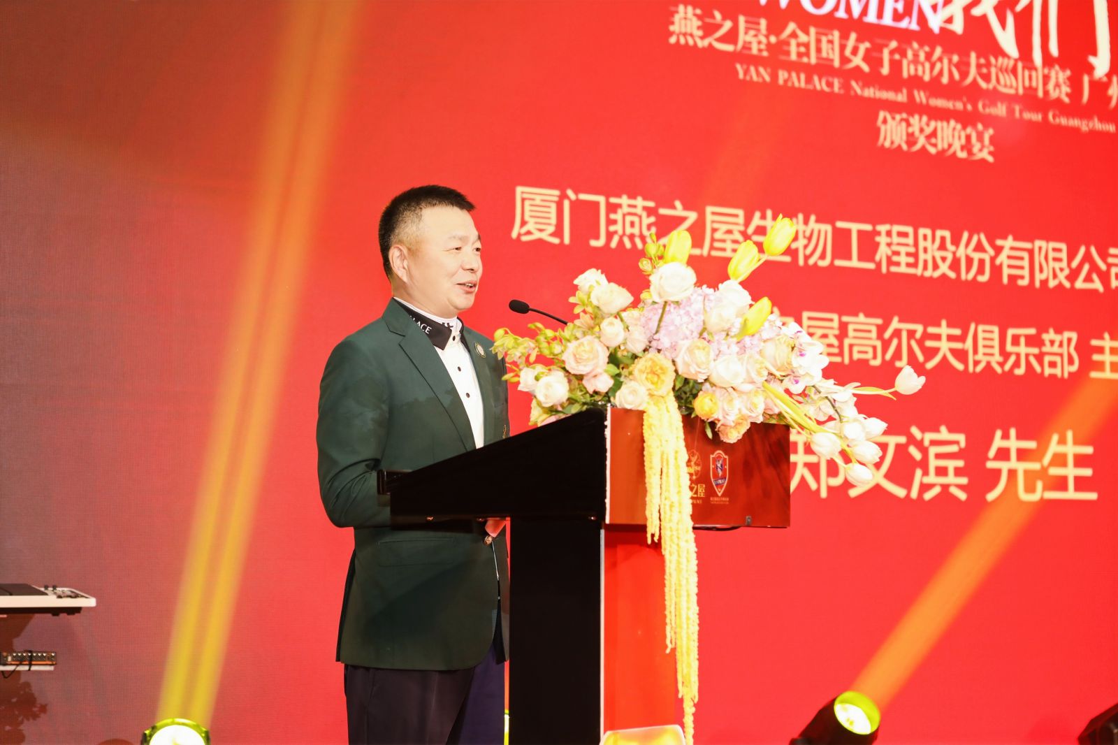 經(jīng)過激烈對決,賽事結(jié)果塵埃落定。比賽結(jié)束后,燕之屋特設(shè)頒獎晚宴,并邀請高球精英們品鑒燕之屋碗燕。在主持人的邀請下,燕之屋副董事長、燕之屋高爾夫俱樂部主席鄭文濱上臺發(fā)表致辭,介紹燕之屋高爾夫俱樂部成立的初心及未來發(fā)展構(gòu)想,他表示:“燕之屋高爾夫俱樂部,以高爾夫運(yùn)動為紐帶,攜手會員朋友共同探索、創(chuàng)造符合高端圈層的高品質(zhì)健康生活方式。秉承真誠用心的服務(wù)理念,俱樂部將以高爾夫賽事為核心,拓展并提供休閑、健康、社交等全方位的服務(wù),通過組織各種賽事、沙龍、活動來增進(jìn)交流,促進(jìn)友誼,打造高端商務(wù)休閑社交平臺,誠摯歡迎全國高爾夫愛好者加入燕之屋高爾夫俱樂部。”
