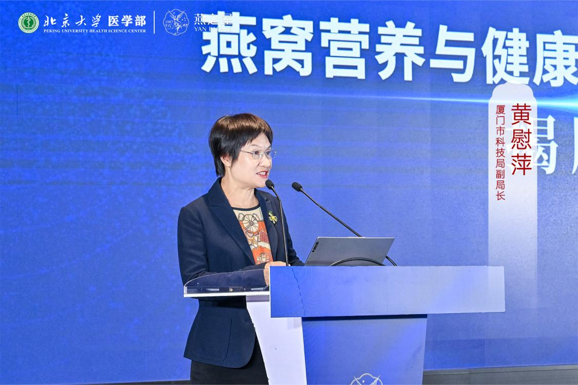 揭牌儀式開場,廈門市科技局副局長黃慰萍發(fā)表致辭,她首先代表廈門市科技局對實(shí)驗(yàn)室的成立表示熱烈地祝賀,并表示:“燕之屋一直致力于推動(dòng)燕窩產(chǎn)業(yè)的創(chuàng)新發(fā)展,擁有先進(jìn)的燕窩研發(fā)技術(shù)和豐富的市場經(jīng)驗(yàn)。北京大學(xué)醫(yī)學(xué)部具有百年的歷史,具有雄厚的科研實(shí)力和豐富的教學(xué)經(jīng)驗(yàn)。兩家校企合作,將充分發(fā)揮各自的優(yōu)勢,共同推動(dòng)醫(yī)療科技創(chuàng)新和應(yīng)用。作為北京大學(xué)醫(yī)學(xué)部和燕之屋聯(lián)合實(shí)驗(yàn)室揭牌儀式的見證人,我也深信這次的合作將帶來重要的發(fā)展意義,雙方將以此為新的契機(jī)和起點(diǎn),探尋科技成果轉(zhuǎn)化的新思路和新舉措,深度融合醫(yī)學(xué)科研研究的創(chuàng)新力量,產(chǎn)出一批真正能服務(wù)于國民健康的優(yōu)質(zhì)創(chuàng)新成果,從而進(jìn)一步推動(dòng)燕窩行業(yè)的高質(zhì)量發(fā)展。”