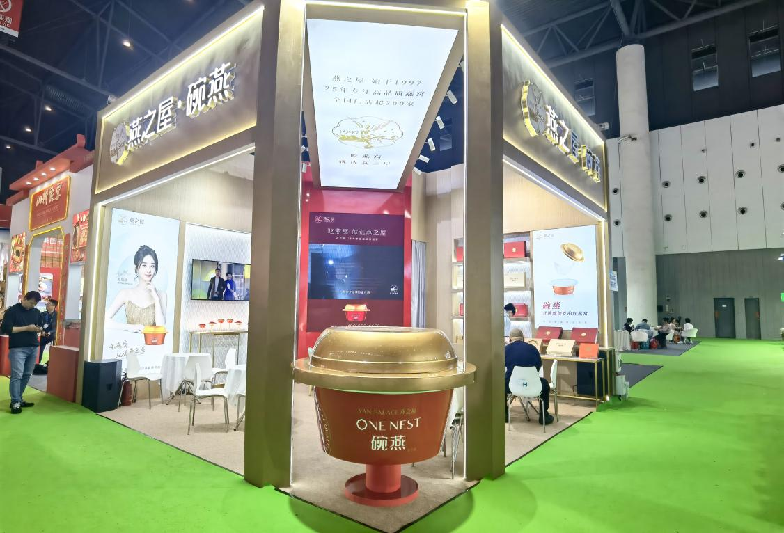 在開好局、起好步,擴大內需,統(tǒng)籌雙循環(huán)背景下,餐飲消費復蘇,食品行業(yè)再次迎來快速發(fā)展的時機。作為燕窩行業(yè)的“領頭燕”、食品產業(yè)的一員,燕之屋秉承“一碗好燕窩,滋潤天下人”的初心,在傳承千年燕窩養(yǎng)生文化*的道路上已經匠心前行25年(*“早在唐代我國就已用瓷器與北婆羅洲大尼亞巖洞所產的燕窩進行物對物的交換,交換品也成為了宮庭的御用珍品。”《藥物與人》August 2000(Vol13)P349)。燕窩自古以來就被視為滋補佳品,汪昂在《本草備要》中載:“燕窩甘淡平,大養(yǎng)肺陰,補而能清”,《本草求真》中亦載:“燕窩入胃補中,俾其補不致燥,潤不致滯”。千年輪回,燕之屋將古法技藝延續(xù),用科技升華,使得燕窩滋補不再繁瑣,讓這份食養(yǎng)在時光中沉淀流傳,在當今時代繼續(xù)煥發(fā)光彩。在本屆糖酒會上,燕之屋碗燕·尊享款、濃情款禮盒、禧孕系列等全品類產品驚艷登場,濃濃滋養(yǎng)、碗碗尊貴,每一款產品都是25載匠心與精湛工藝的結晶,綻放出傳統(tǒng)燕窩的新風采,為食品行業(yè)注入新活力。展臺設計則以金檳色為主色調,中國紅為輔,打造了高端典雅的滋補場景,展現(xiàn)了中式燕窩養(yǎng)生文化的自信表達。