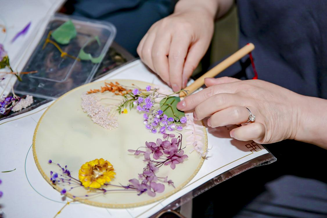 團扇,是中國漢族傳統(tǒng)工藝品及藝術品,代表著團圓友善、吉祥如意;干花,經過晾曬,保留原本的形態(tài)和顏色,蘊含永恒之意。當天,心靈手巧的嘉賓們發(fā)揮想象力,利用各式各樣的干花和綠葉,在扇面上巧妙組合,繪制出一幅幅優(yōu)美的畫卷。初夏清風襲來,佳麗們手執(zhí)團扇,一搖一曳間盡顯東方魅力。以扇面為底,以干花為飾,燕之屋母親節(jié)團扇主題活動分享著對美的解讀,也傳遞著媽媽們對生活的熱愛和向往。