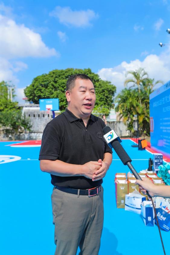 借著新球場(chǎng)落成之際,一堂AI智能“神投手”投籃訓(xùn)練教學(xué)課隨即展開。廣東省第十三屆政協(xié)委員、中國籃球名宿、廣東省書豪李群體育事業(yè)公益基金會(huì)理事長(zhǎng)李群現(xiàn)場(chǎng)示范、教學(xué),以輕松、快樂的方式帶領(lǐng)孩子們率先感受新球場(chǎng)帶來的美好體驗(yàn),現(xiàn)場(chǎng)陣陣掌聲與歡笑聲也詮釋著童心逐夢(mèng)、志在未來。燕之屋執(zhí)行董事、總裁李有泉還在現(xiàn)場(chǎng)接受了陽東電視臺(tái)、陽東綜合頻道記者的采訪。