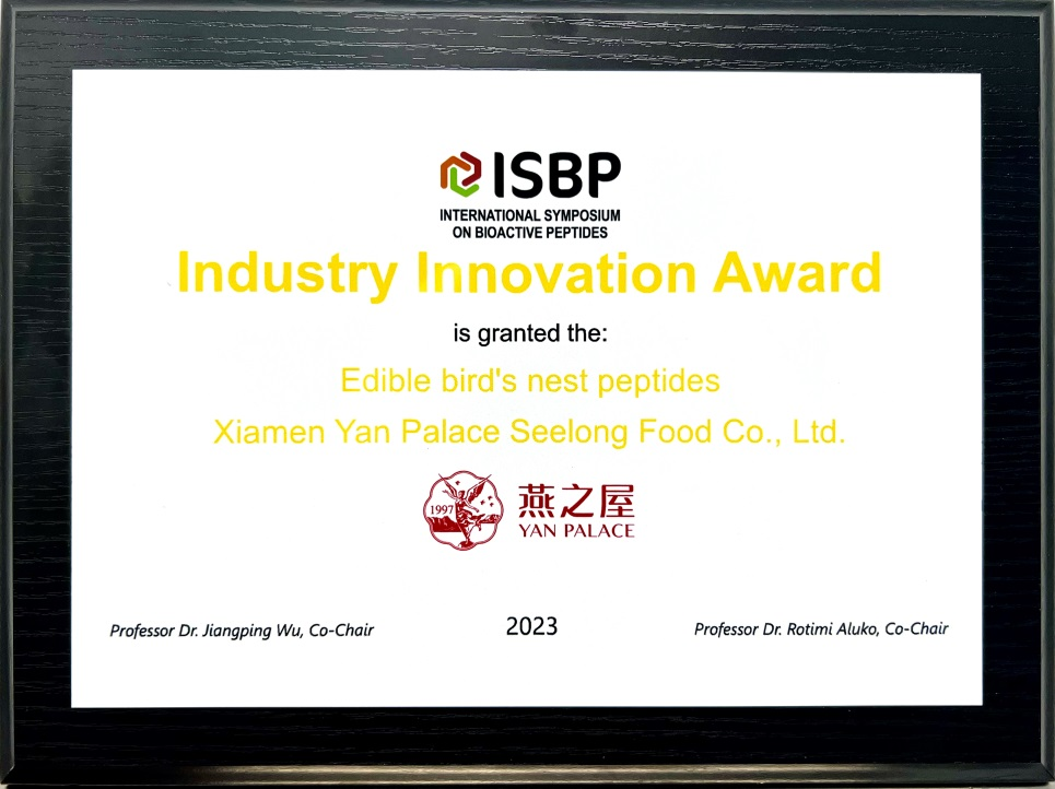 除此之外,2023年,燕之屋燕窩研究院通過體外生化、細胞、生物三維立體證實了燕窩肽的抗衰老功效,并在國際權(quán)威期刊Journal of Functional Foods發(fā)表了燕窩肽抗衰研究《基于生化、細胞和動物模型的燕窩肽抗衰老作用研究》(Study of the antiaging effects of bird's nest peptide based on biochemical, cellular, and animal models),燕之屋堅持創(chuàng)新科研,通過先進技術(shù)揭示燕窩肽抗衰老功效,再一次為燕窩肽的研究發(fā)展貢獻有利價值。憑借在燕窩肽領(lǐng)域創(chuàng)新性、實用性前沿科研成果,燕之屋于今年榮獲第三屆國際活性肽論壇燕窩肽——行業(yè)創(chuàng)新獎(Industry Innovation Award)。