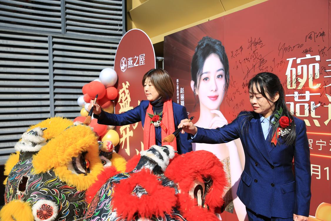 致辭結(jié)束后,現(xiàn)場(chǎng)領(lǐng)導(dǎo)與嘉賓上臺(tái)剪彩,一同剪下手中的金色綢帶,掀開(kāi)燕之屋寧波慈溪旗艦店的嶄新篇章。隨著金剪開(kāi)剪,彩帶飄揚(yáng)、祥獅吐瑞,燕之屋寧波慈溪旗艦店正式啟幕。開(kāi)業(yè)盛典上,鼓聲響起,獅頭威武雄壯、獅身矯健剛勁,為開(kāi)業(yè)典禮增添了壯麗氣勢(shì),賦予新店無(wú)限希望與活力。在現(xiàn)場(chǎng)來(lái)賓的見(jiàn)證下,兩位領(lǐng)導(dǎo)共同為燕之屋寧波慈溪旗艦店進(jìn)行了點(diǎn)睛儀式。