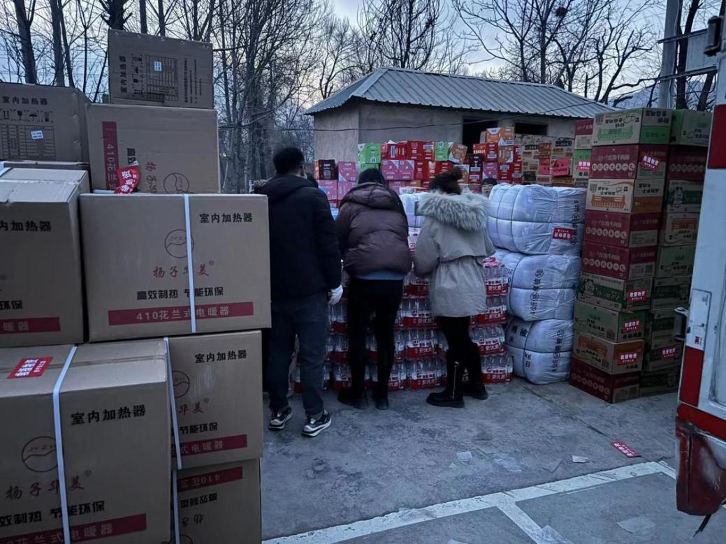 圖:燕之屋抗震救災(zāi)物資抵達(dá)青海省海東市民和縣鮑家村
