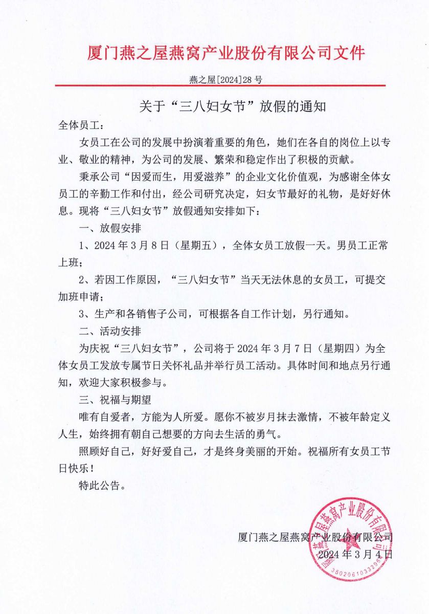 關(guān)于“三八婦女節(jié)”放假的通知