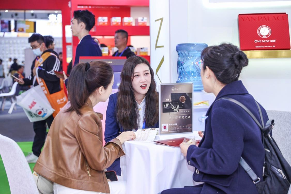 憑借高品質(zhì)與好口碑,截至2022年,燕之屋已連續(xù)七年燕窩銷售規(guī)模全國(guó)第一*(*燕之屋在2016-2022年中國(guó)境內(nèi)包裝燕窩行業(yè)連續(xù)七年燕窩銷售額全國(guó)第一,備注:北京中研世紀(jì)咨詢有限公司,全國(guó)包裝燕窩品牌,中國(guó)境內(nèi)2016年-2022年全年終端零售額分別統(tǒng)計(jì)排名;包裝燕窩指即食燕窩、鮮燉燕窩、干燕窩;于2023年2月9日完成調(diào)研),2022年在全國(guó)220個(gè)城市核心地段開設(shè)700多家實(shí)體終端,燕窩專營(yíng)門店數(shù)量全國(guó)領(lǐng)先(燕之屋在2022年中國(guó)境內(nèi)包裝燕窩行業(yè)燕窩專營(yíng)門店數(shù)量全國(guó)領(lǐng)先,來源:弗若斯特沙利文基于中國(guó)境內(nèi)包裝燕窩行業(yè)獨(dú)立市場(chǎng)研究),夯實(shí)燕窩行業(yè)地位,成為越來越多消費(fèi)者心中的燕窩優(yōu)選品牌?,F(xiàn)場(chǎng),燕之屋展位人氣火爆,前來咨詢和洽談的客商、觀展人群絡(luò)繹不絕,熱鬧非凡。