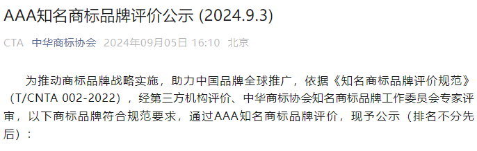 燕之屋“碗燕”商標成功通過AAA知名商標品牌評價