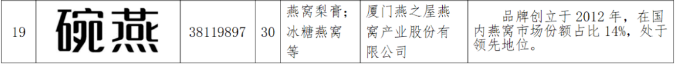 圖:燕之屋“碗燕”商標通過AAA知名商標品牌評價
