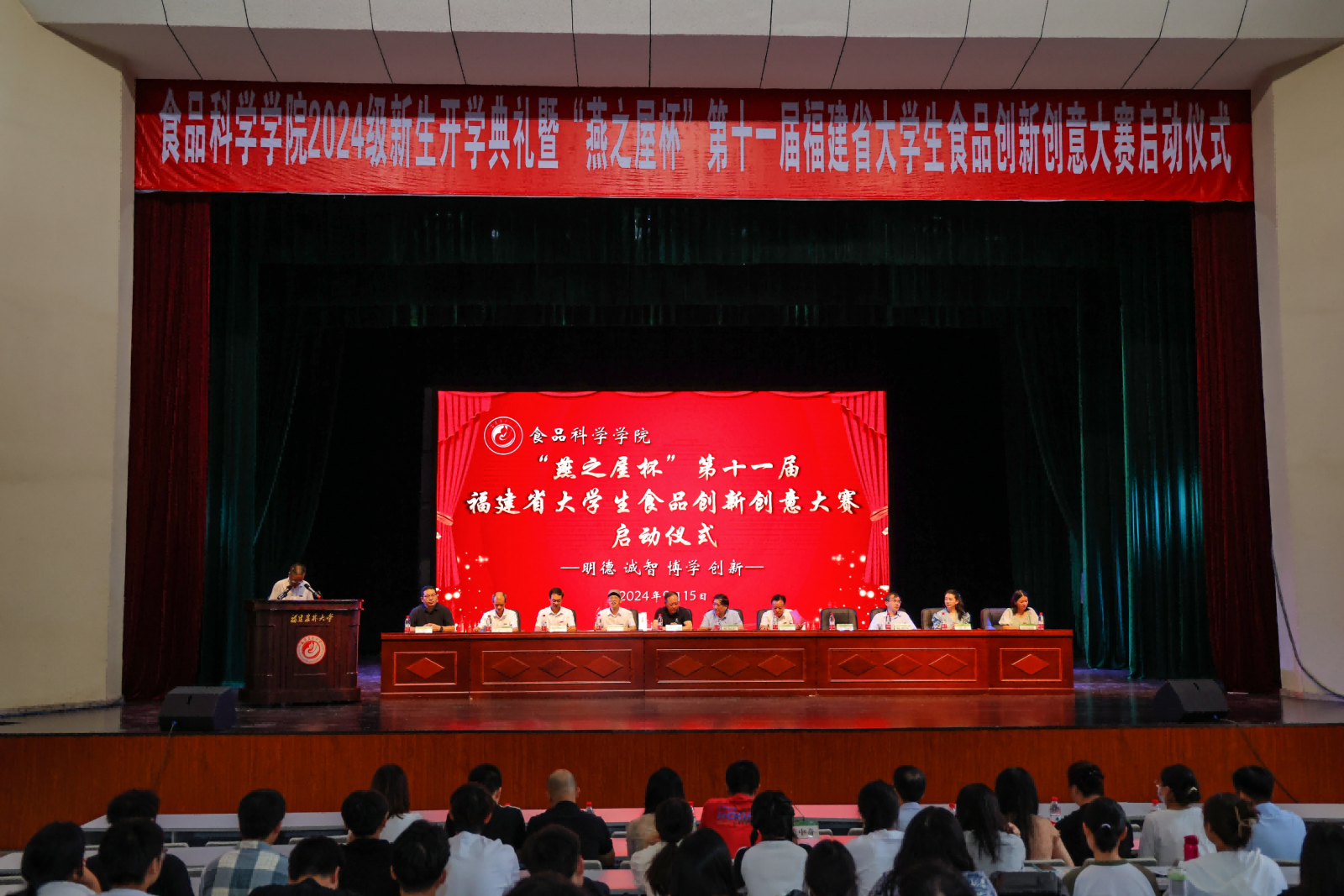 9月15日下午,以“‘燕’領(lǐng)健康潮,營養(yǎng)新‘食’代”為主題的“燕之屋杯”第十一屆福建省大學(xué)生食品創(chuàng)新創(chuàng)意大賽啟動(dòng)儀式在福建農(nóng)林大學(xué)舉行。福建省第十一屆政協(xié)副主席陳紹軍教授,福建農(nóng)林大學(xué)副校長鄭寶東教授,燕之屋創(chuàng)始人、董事長黃健,福建省食品加工與貯藏工程學(xué)會理事長及福建農(nóng)林大學(xué)食品科學(xué)學(xué)院黨政班子、參賽單位教師代表及學(xué)生近500人參加了啟動(dòng)儀式。啟動(dòng)儀式由食品科學(xué)學(xué)院黨委書記蘇健涵主持。