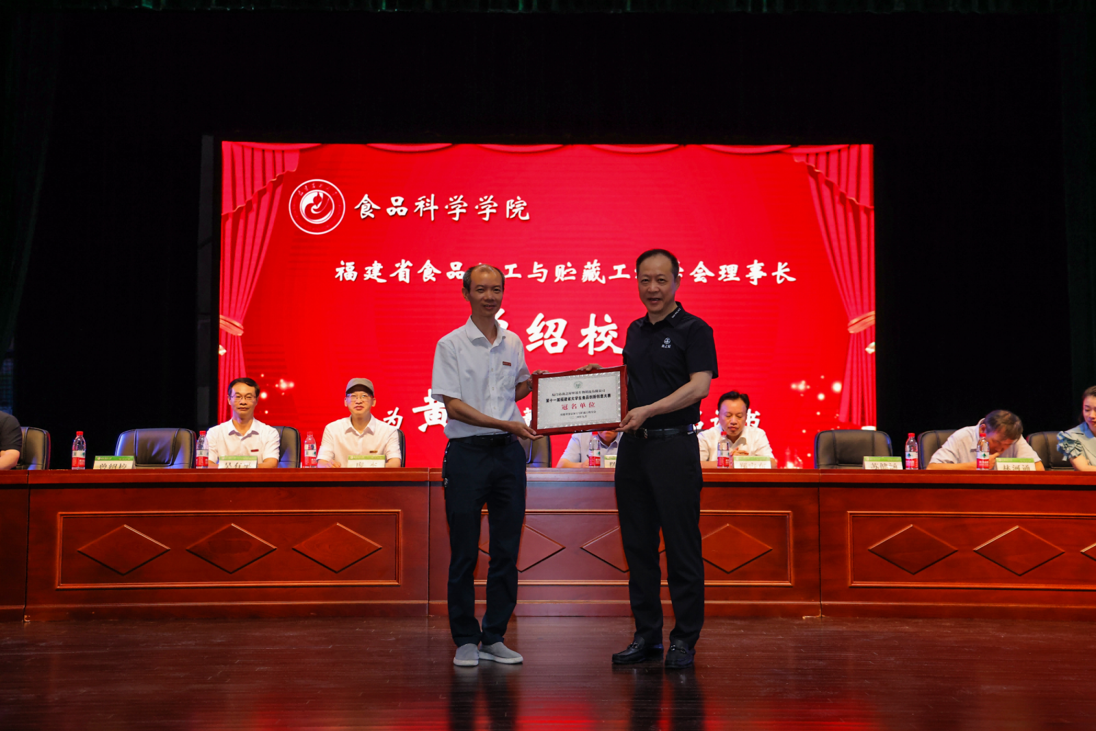 隨后,由福建省食品加工與貯藏工程學(xué)會理事長曾紹校教授為黃健董事長頒發(fā)冠名證書。