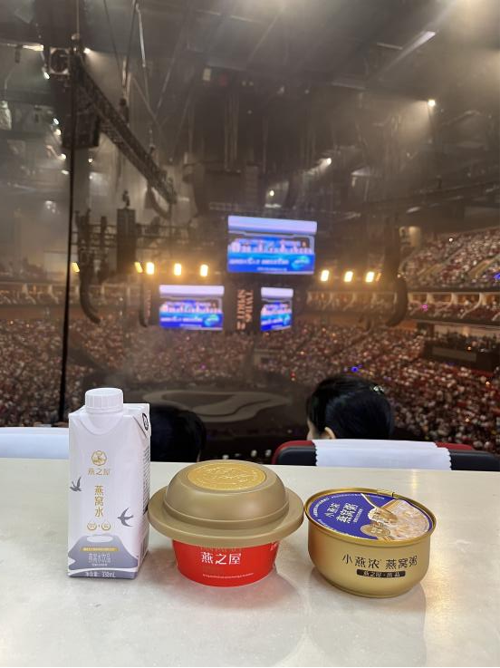 燕之屋專屬貴賓包廂位于場館包廂層觀演區(qū),以獨(dú)立豪華私享空間、劇場型座椅、餐飲服務(wù)等高級配置,為客戶打造舒適、自由、高品質(zhì)的觀演新體驗(yàn)。包廂客戶不僅可以享受專屬便捷入場通道、視野廣闊的沉浸式觀演,還可享用燕之屋小燕濃燕窩粥、燕之屋燕窩肽天然蘇打水,升級美好視聽盛宴。燕之屋借助持續(xù)火爆的演出市場,將品牌傳播與演唱會(huì)創(chuàng)新結(jié)合,通過邀請觀看演唱會(huì)的方式答謝忠實(shí)客戶,深受客戶喜愛。