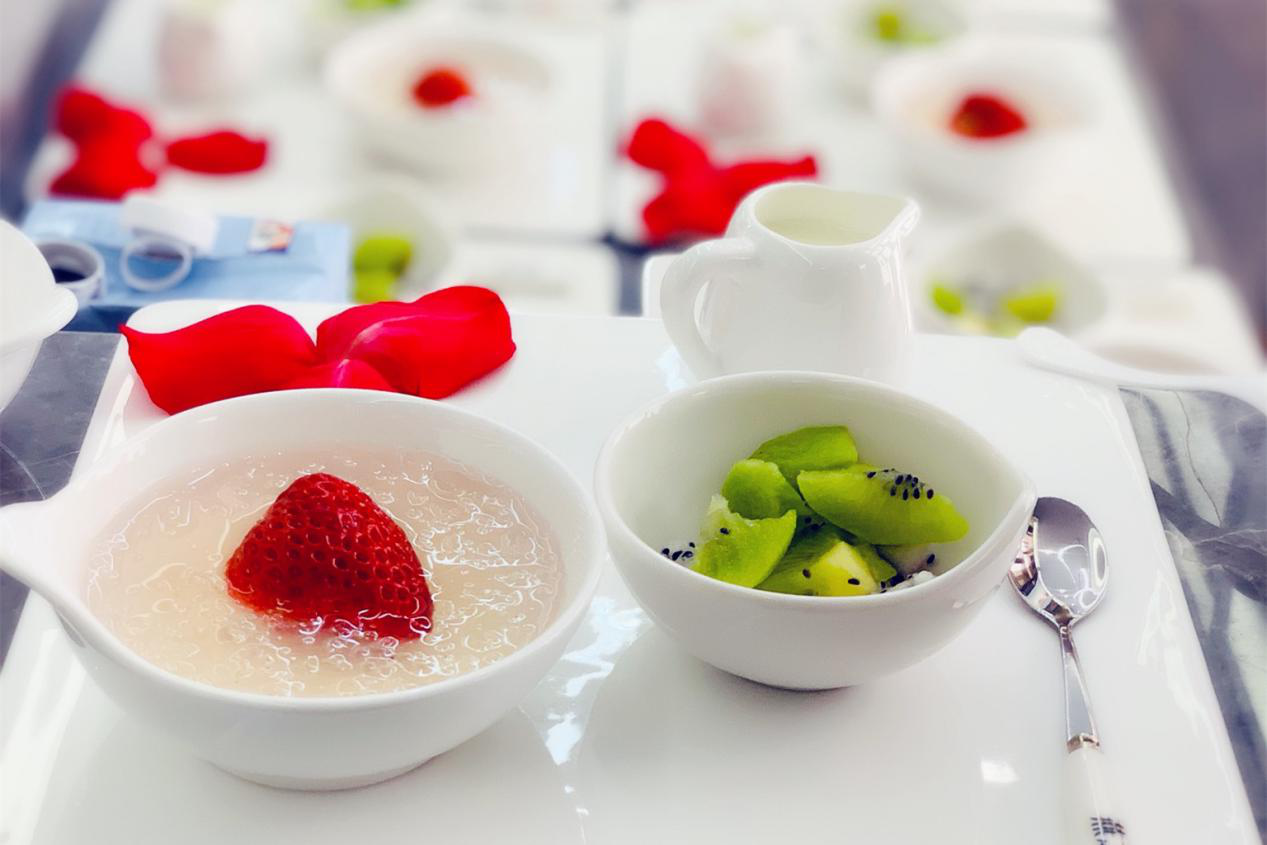 圖:燕之屋福州舉辦繪畫主題品鑒會(huì)現(xiàn)場(chǎng)鮮燉燕窩搭配草莓等水果
