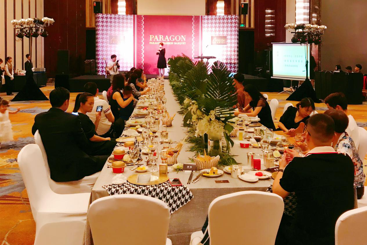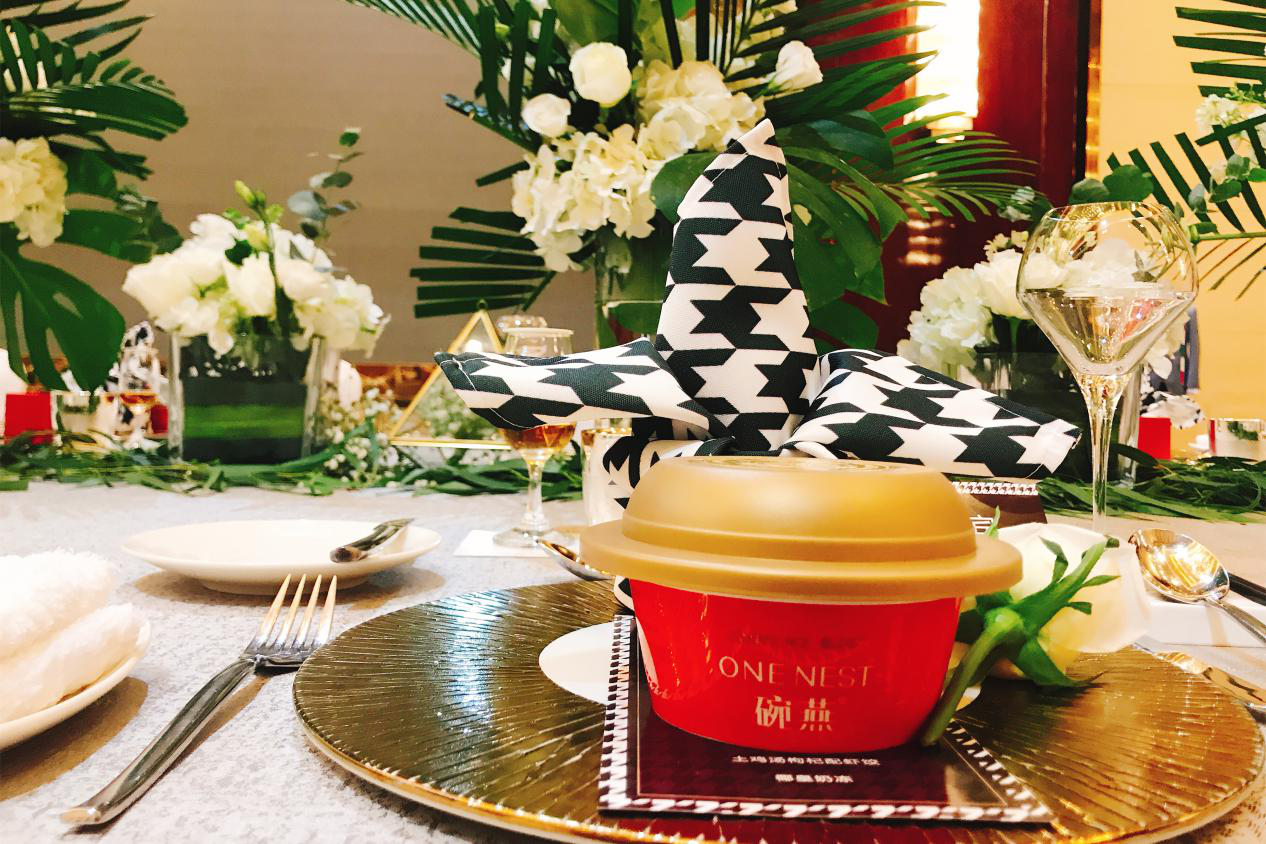 本次晚宴在布置設(shè)計(jì)上下了極大的功夫,宴會(huì)廳以維多利亞時(shí)代風(fēng)潮為背景,融合了時(shí)髦摩登的現(xiàn)代感和簡(jiǎn)約優(yōu)雅的古典風(fēng)格,給嘉賓們帶來了雙重潮流風(fēng)尚體驗(yàn)。熱情的花藝系與千鳥格鋪滿場(chǎng)館,輕重材質(zhì)拼接交錯(cuò),詮釋了當(dāng)下優(yōu)雅與磐基名品中心的品牌基調(diào)。晚宴一角,設(shè)置有燕之屋碗燕專區(qū),錯(cuò)落有致的產(chǎn)品陳列,也為晚宴的氛圍再添一筆亮色,吸引不少來賓就圍觀咨詢。