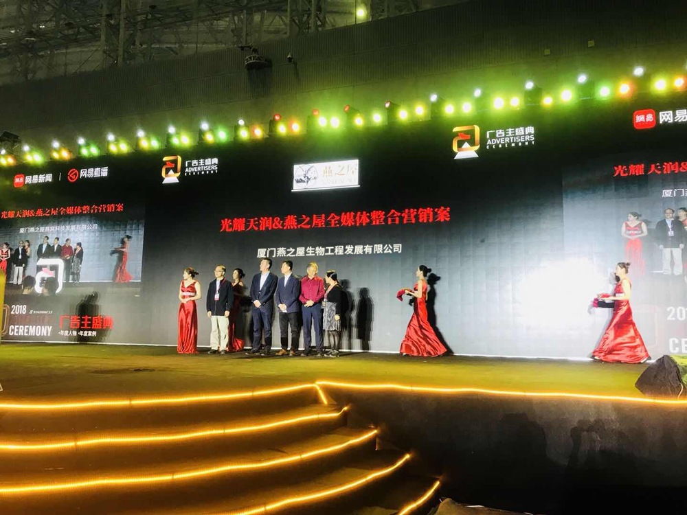 圖:燕之屋榮獲“2018廣告主盛典整合營銷年度金牌案例”頒獎現(xiàn)場