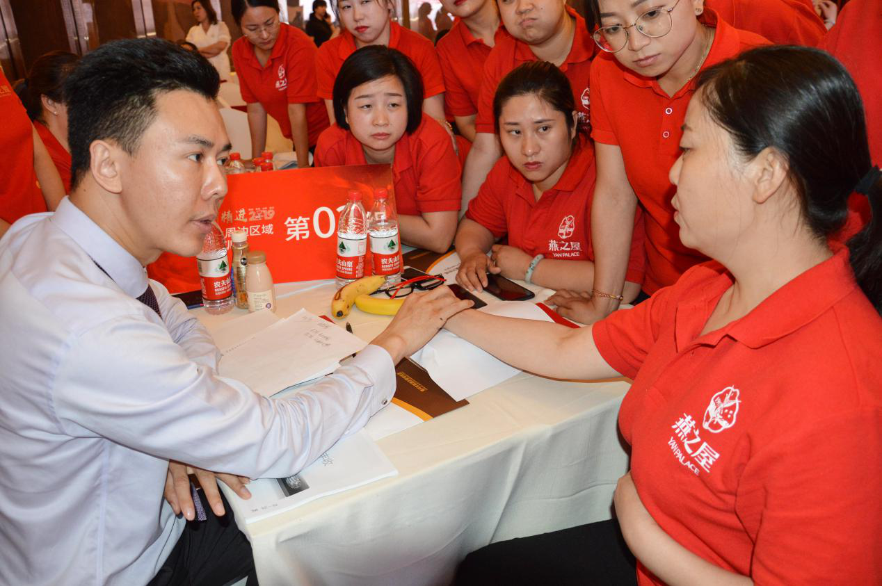 在學員們對燕窩知識有了初步了解的基礎上,次日,燕之屋特意邀請中醫(yī)養(yǎng)生培訓高級講師、國家注冊中醫(yī)師葛敬儒為大家就中醫(yī)養(yǎng)生方面的知識進行普及,讓學員們的專業(yè)知識更加系統(tǒng)化、全面化。課上,葛敬儒老師指導大家學會從“肝臟的保護”、“更年期綜合癥”、“寒性體質調節(jié)”三個方面,掌握中藥的治療方法以及關鍵穴位的療法,更好地為身體做“保養(yǎng)”,擁抱健康,也服務客戶。