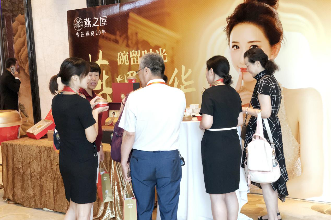 圖:2019海銀財(cái)富全球資產(chǎn)配置高峰論壇現(xiàn)場(chǎng)燕之屋工作人員向嘉賓介紹碗燕產(chǎn)品