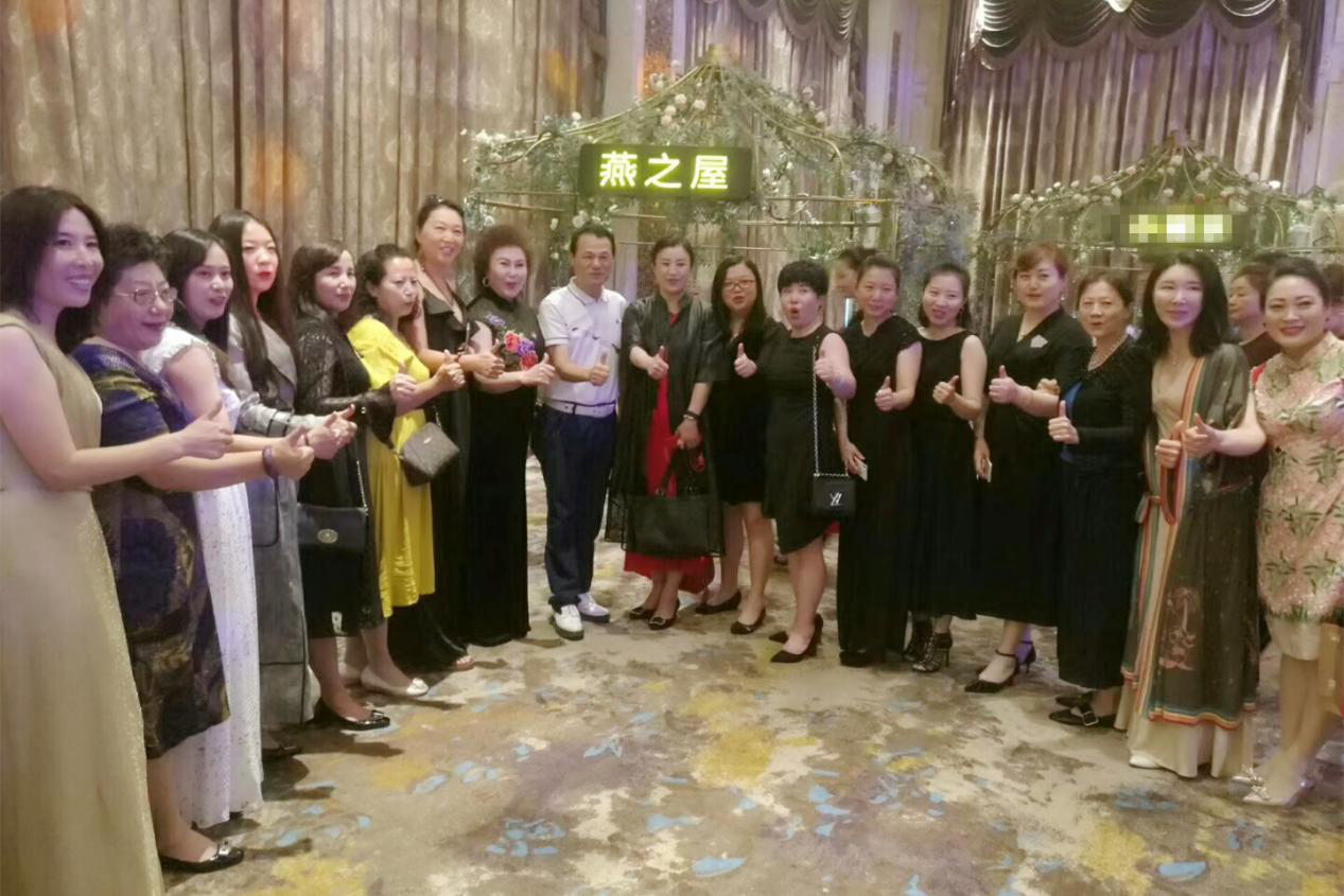 圖:女企業(yè)家們與中國知名男歌手張行合影