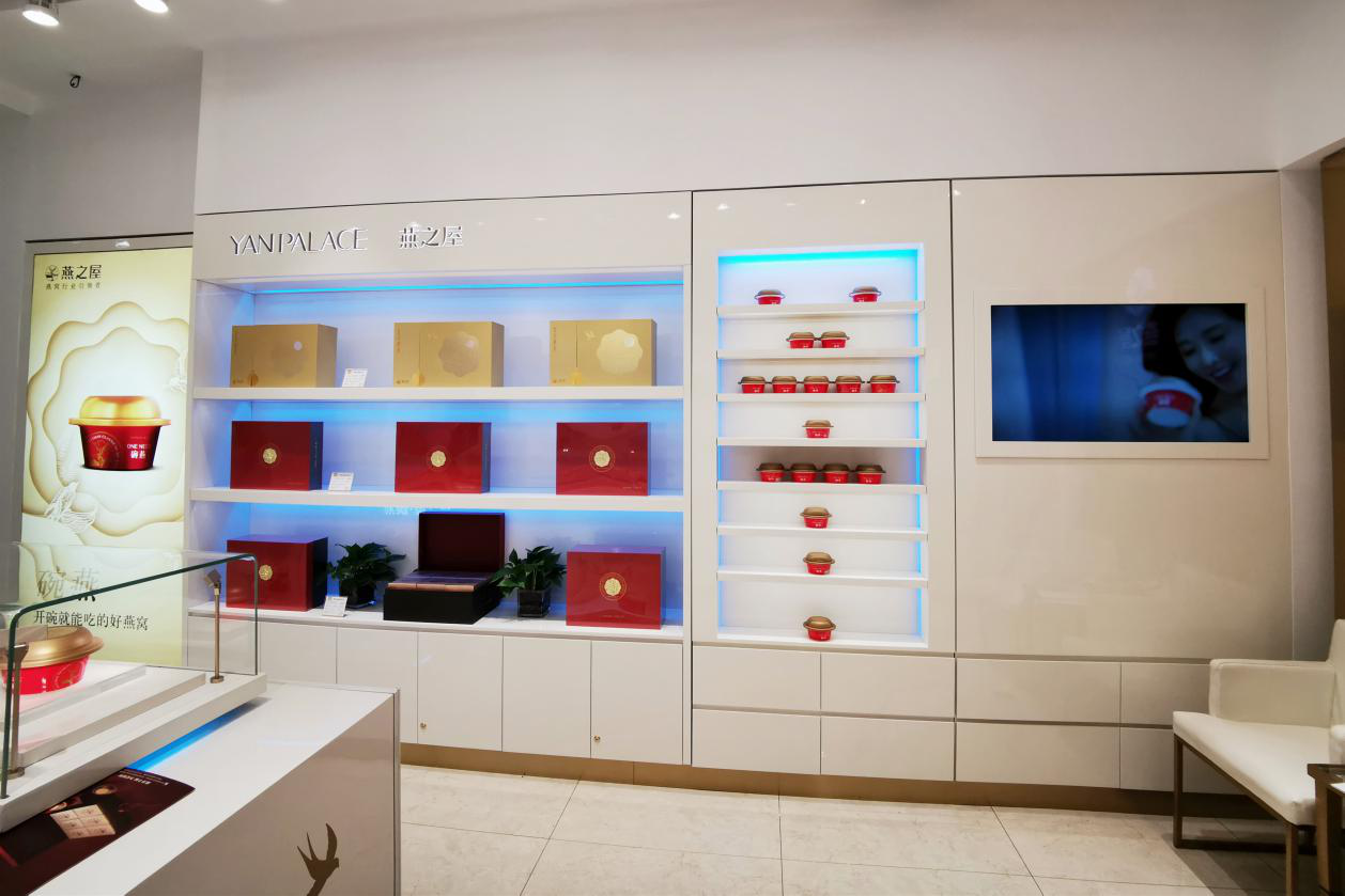 圖:燕之屋太原市場(chǎng)公園時(shí)代城購物廣場(chǎng)店碗燕產(chǎn)品展示臺(tái)
