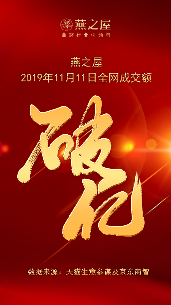 再拿第一!燕之屋勇奪“2019天貓雙11滋補(bǔ)品類銷量四連冠”