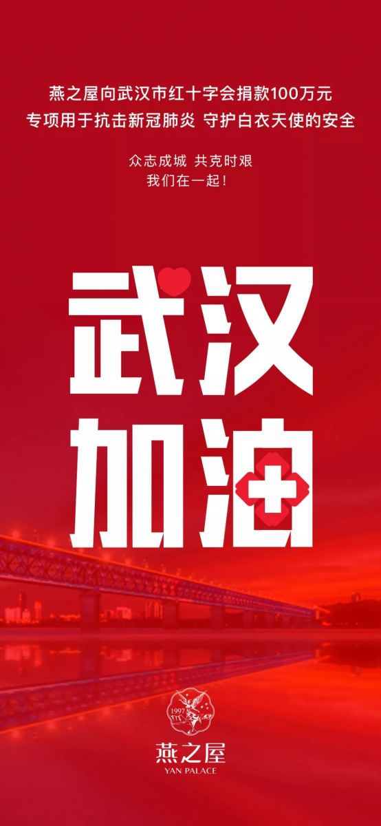 為了更好地守護(hù)白衣天使的安全,也為疫情的防控與治療盡一份力量,1月26日,在與當(dāng)?shù)叵嚓P(guān)機(jī)構(gòu)全面溝通后,燕之屋向武漢市紅十字會(huì)捐款首批100萬元,專項(xiàng)用于武漢前線抗擊及防治疫情工作,包括醫(yī)療用品等急需物資的采購,守護(hù)一線醫(yī)療人員的工作安全。與此同時(shí),燕之屋也面向企業(yè)內(nèi)部發(fā)起倡議,呼吁全體員工多方助力,共同抗擊肺炎疫情。