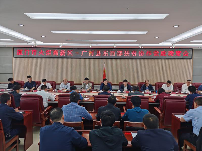 圖:2020年6月11日,廣河縣召開(kāi)廈門市火炬高新區(qū)-廣河縣東西部扶貧協(xié)作黨政聯(lián)席會(huì)