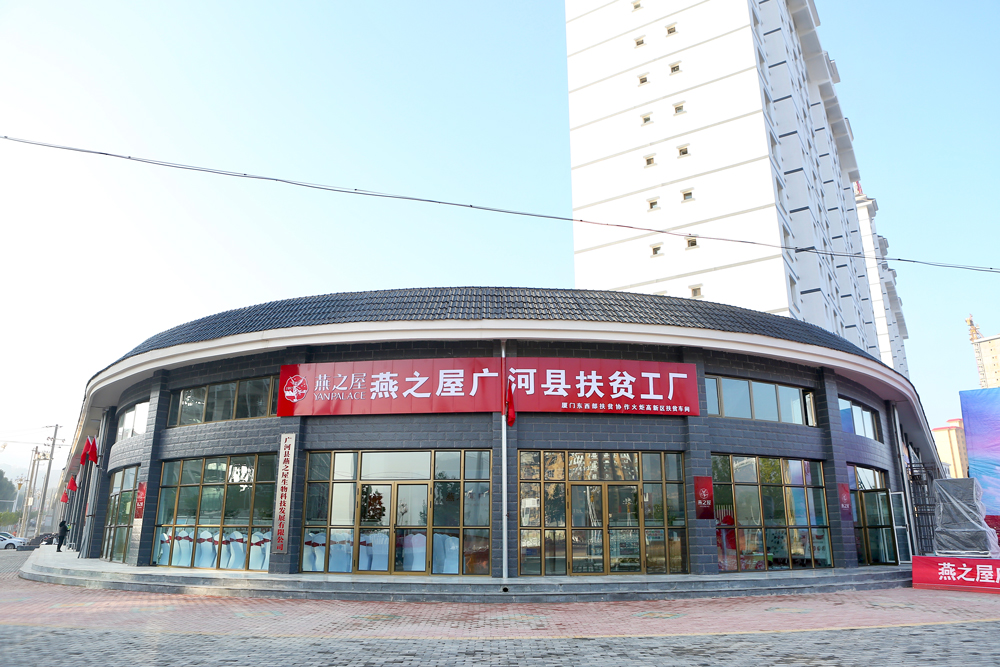 2019年10月17日,燕之屋廣河縣扶貧工廠作為廈門市首批參與廣河縣脫貧攻堅(jiān)的項(xiàng)目,正式舉行了開(kāi)工儀式。如今半年多過(guò)去了,今天當(dāng)周邊的住戶談到燕之屋時(shí),好些人會(huì)指向扶貧工廠的廠區(qū)說(shuō):“我們物個(gè)廠里一掛想去哩,人滿哈著哩,我們還不要。”(意即:我們都想去這個(gè)廠,可惜已經(jīng)滿員了,進(jìn)不去了)有家人在燕之屋上班的居民也都很自豪地表示:“我家有人就在里面上班,很好啊!”