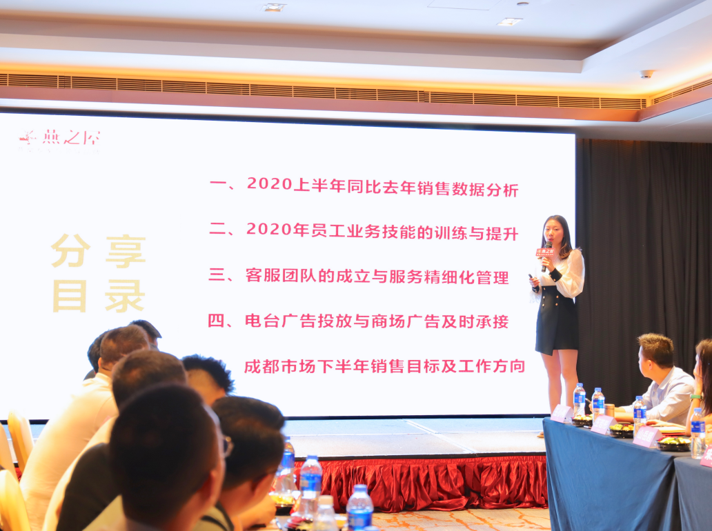 座談會中,來自不同區(qū)域市場的優(yōu)秀合作商伙伴結合自身經驗與佳績案例做出了精彩的分享。燕之屋成都市場在不斷的總結中成長,全方面工作聚焦,夯實基礎,成立客服團隊與服務精細化管理,逆勢增長;燕之屋銀川市場完善布局雙店齊開,資源有效整合;燕之屋玉溪市場全力發(fā)動圈層的力量,多形式組合,靈活巧用傳播資源,逆勢硬核增長;燕之屋西寧市場緊跟總部步伐,全力推動市場各項活動政策,完善體系管理。各市場暢談經驗,歸納提煉當地市場運營能力的方法和策略,具有極大的借鑒及指導意義。
