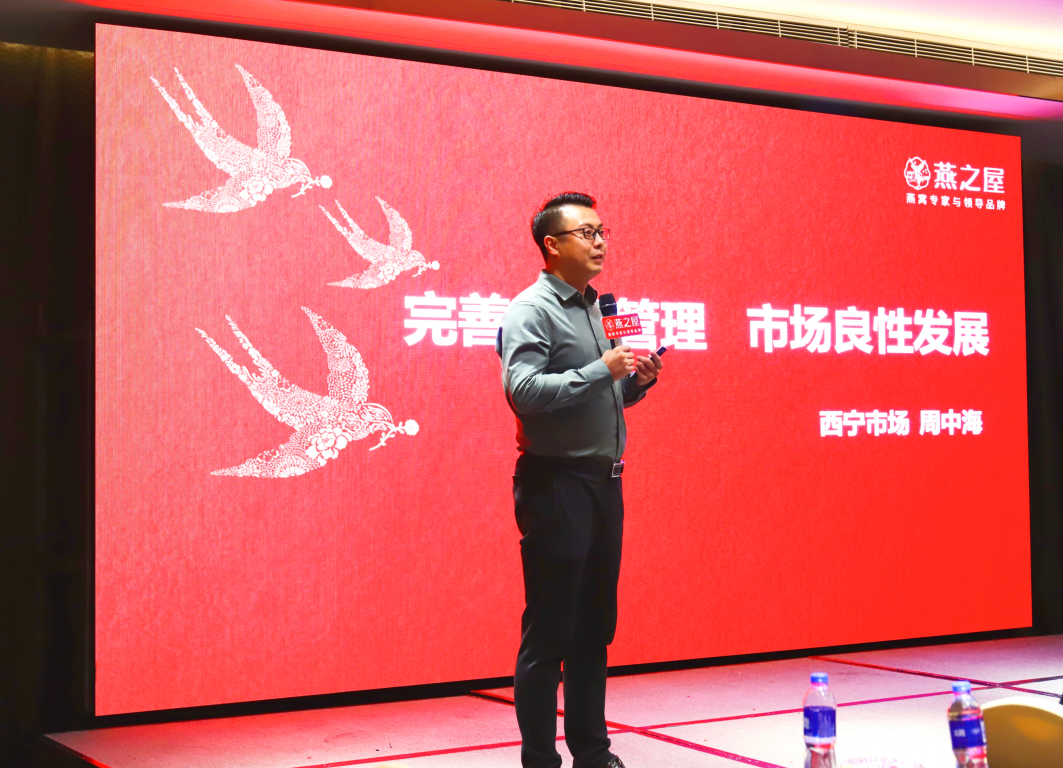 會議開始,燕之屋執(zhí)行董事兼總裁李有泉發(fā)表會議致辭。他表示:利國利民之業(yè),才叫事業(yè)。燕之屋是一個小而美的企業(yè),燕之屋一直關愛,關心,扶持我們的合作商伙伴,與大家共同成長,從生意人蛻變?yōu)槠髽I(yè)家;用科技、匠心來錘煉產品品質、服務品質,為消費者、為社會、為員工、為國家?guī)r值,這就是我們做企業(yè)的歸屬和目的。希望大家通過今天優(yōu)秀市場分享的經驗有所收獲,結合總部制定的銷售戰(zhàn)術,借疫情過后大健康產業(yè)爆發(fā)之勢,借燕之屋全品類發(fā)展之勢,借燕之屋品牌塑造之勢,順勢而為,乘風破浪!