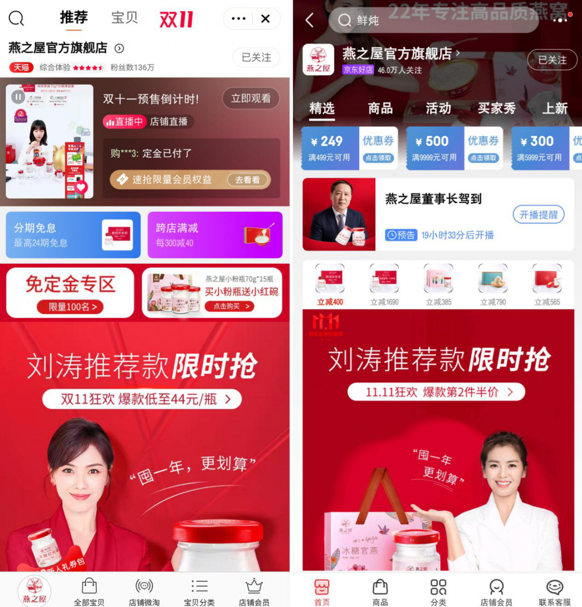圖:燕之屋天貓、京東官方旗艦店首頁