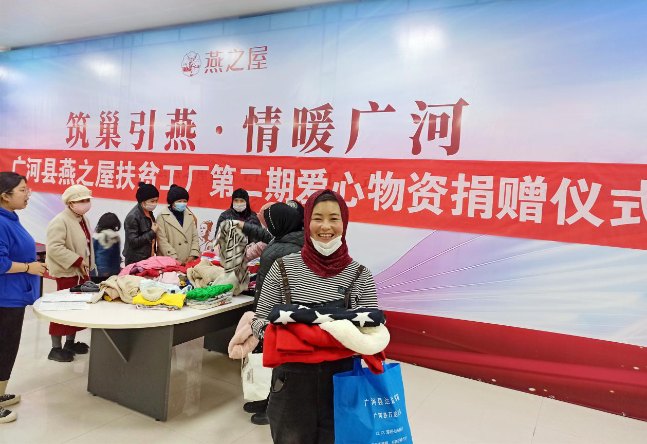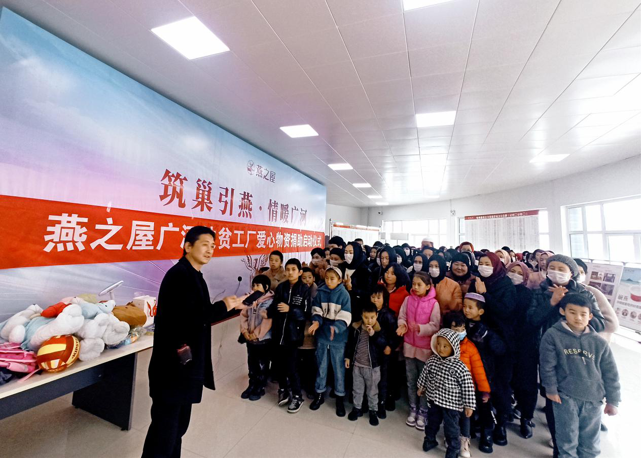 2020年11月4日第一期“廣河縣燕之屋扶貧工廠愛心物資捐贈(zèng)啟動(dòng)儀式”,燕之屋邀請了廣河縣西街社區(qū)馬小龍書記為啟動(dòng)儀式致辭。馬書記對此特意向燕之屋表示了感謝,并鼓勵(lì)員工懷揣感恩之心努力工作。活動(dòng)現(xiàn)場,馬書記為當(dāng)?shù)貑T工家庭發(fā)放學(xué)習(xí)益智類圖書以及兒童玩具,小朋友們收到愛心物資后興奮不已。11月14日,燕之屋廣河扶貧工廠進(jìn)行了第二期愛心物資捐贈(zèng),由廣河車間管理團(tuán)隊(duì)組織,負(fù)責(zé)員工冬日衣物落實(shí)發(fā)放,確保解決員工實(shí)際需求。