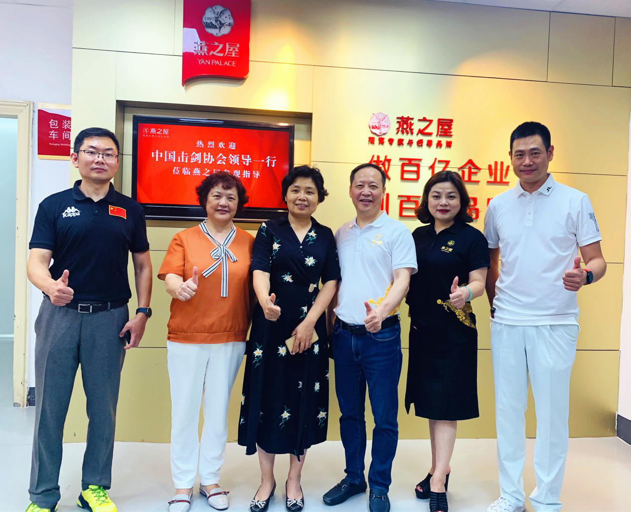 圖:2020年3月中國擊劍協(xié)會副秘書長王峻燕(左三)等領(lǐng)導(dǎo)在燕之屋合影留念