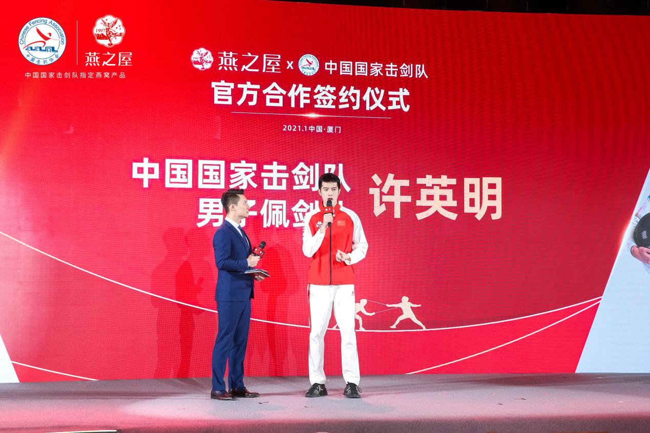 2021年1月19日下午,燕之屋與中國國家擊劍隊官方合作簽約儀式在廈門舉行。燕之屋成為中國國家擊劍隊指定燕窩產(chǎn)品,“劍”證榮耀品質(zhì),國家隊伍與燕窩行業(yè)引領(lǐng)品牌強強聯(lián)手,用安全、高品質(zhì)、健康的滋補佳品,助力奧運健兒征戰(zhàn)賽場,斬獲榮耀!