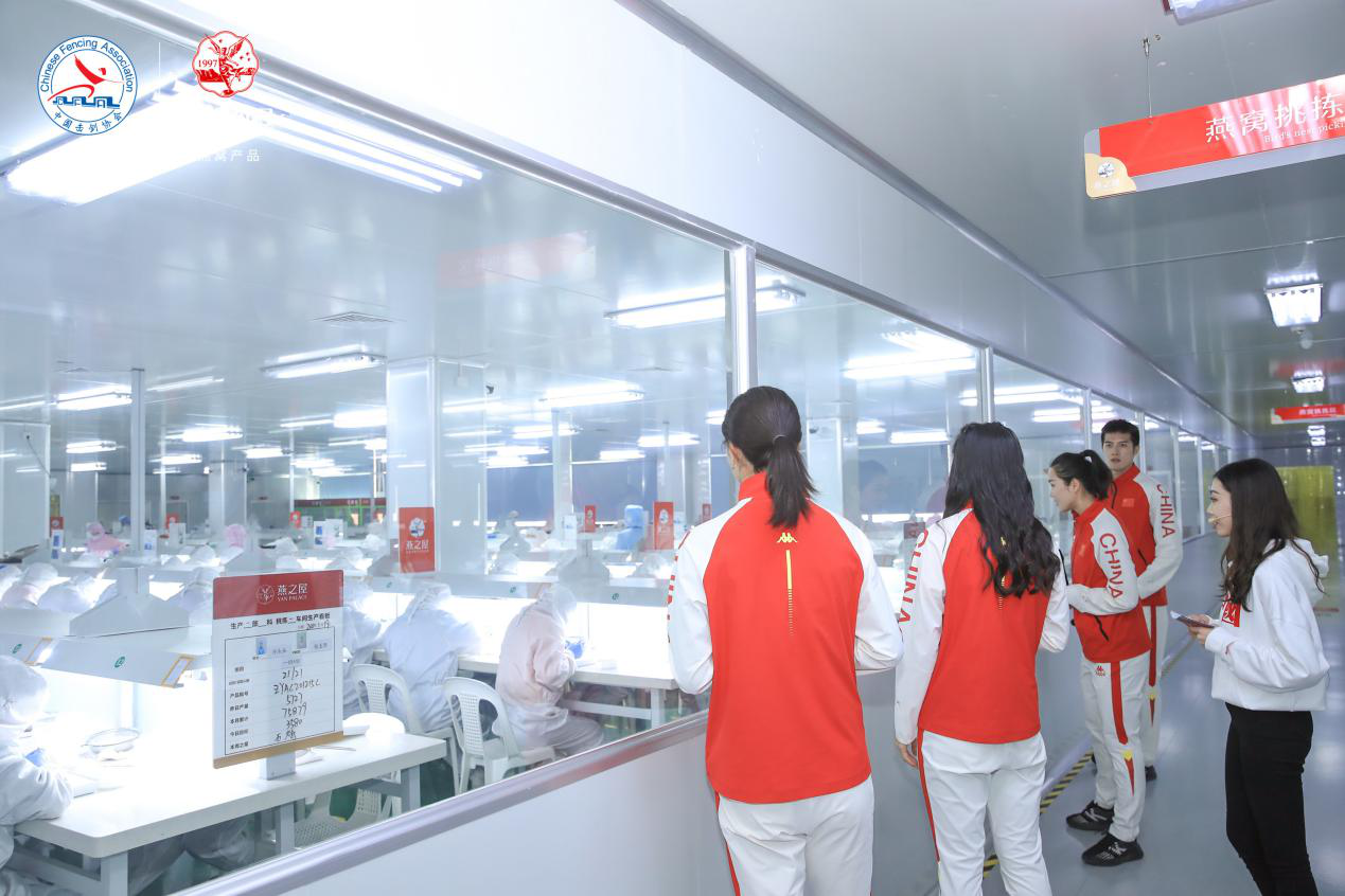 圖:中國國家擊劍隊運動員參觀燕之屋工廠