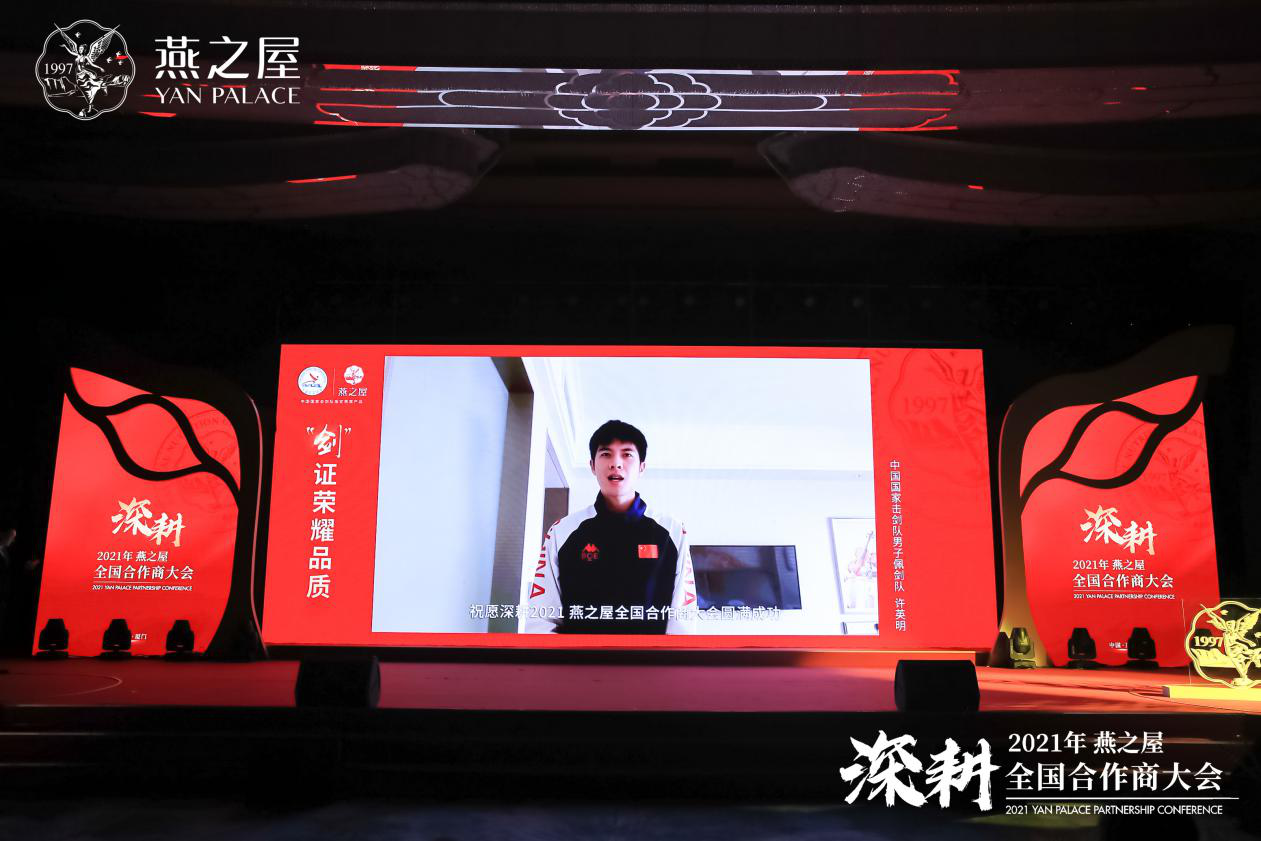2021奧運年,在這關鍵的奧運沖刺階段,燕之屋憑借卓越品質(zhì)成為中國國家擊劍隊指定燕窩產(chǎn)品,與國家隊并肩作戰(zhàn),為運動員的日常生活、訓練、比賽提供高品質(zhì)的營養(yǎng)支持。由于中國國家擊劍隊正在國外參加奧運會資格賽,無法來到現(xiàn)場,他們通過視頻為“深耕”2021年全國合作商大會送上祝福。