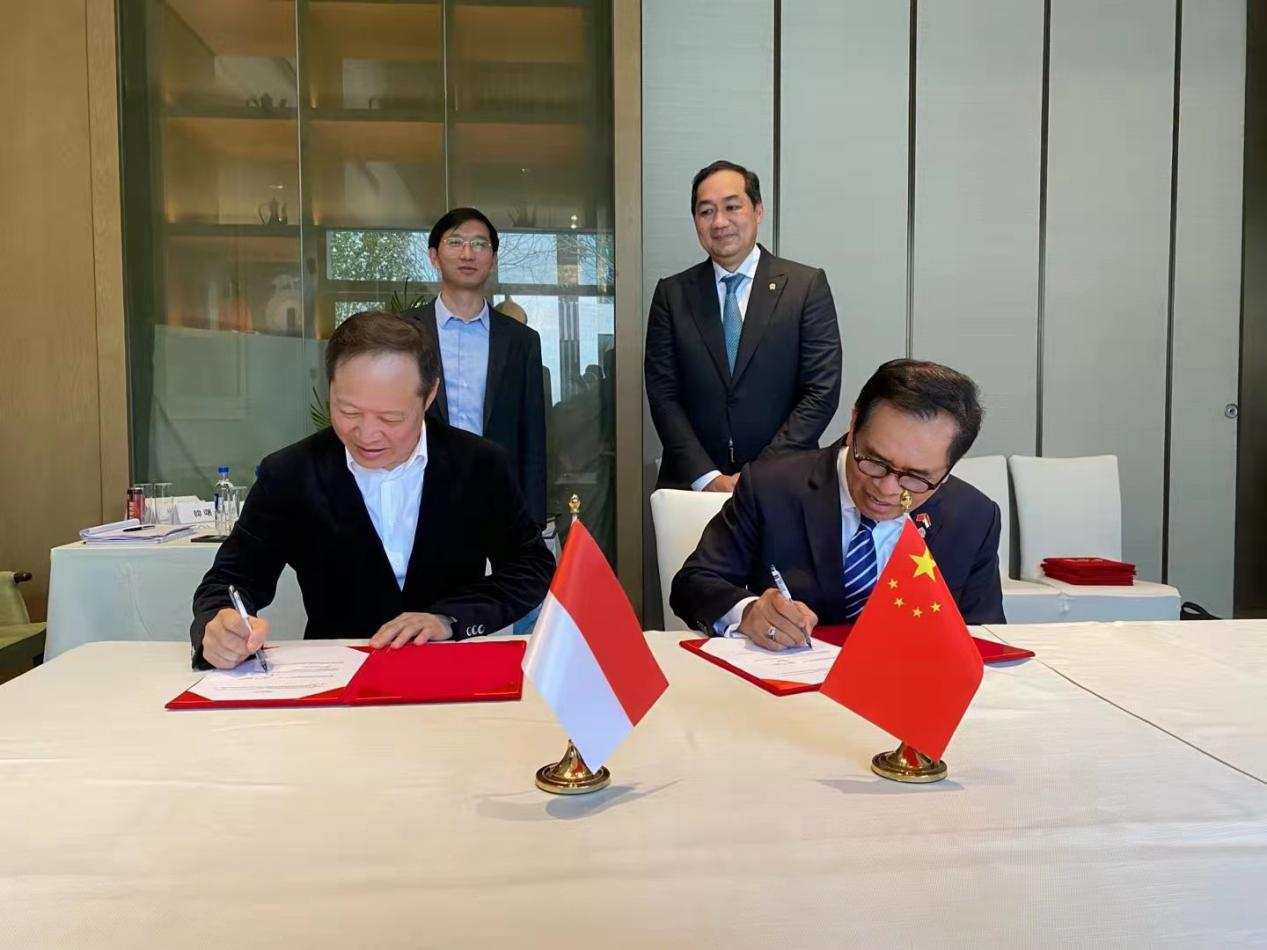 圖:印尼駐華大使周浩黎(前排右)與燕之屋董事長黃健(前排左)簽訂協(xié)議