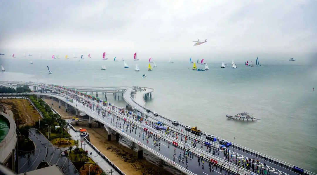 “海上白帆,陸上跑馬”。今年廈門的帆船賽以“紅船杯”為主題,賽事分為場地賽與長距離航行賽,設為IRC、J80等四個級別,另設有大學生組和公開組等組別,共計六項十八個獎杯。此外,同期鳴槍開跑的2021廈門馬拉松與廈門帆船賽攜手相伴,當日,白帆點點,人潮洶涌,一幅壯觀的角逐賽以“海陸空”方式,全方位呈現了廈門的活力四射的體育文化,讓眾多圍觀者直呼精彩!