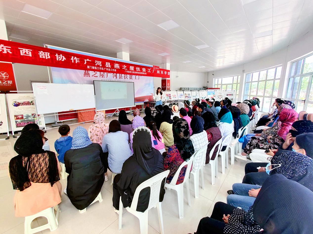 燕之屋在廣河縣除了通過(guò)產(chǎn)業(yè)扶貧幫助當(dāng)?shù)貙?shí)現(xiàn)脫貧之外,還同步開展了職工課堂、周末課堂,加大對(duì)當(dāng)?shù)亟n立卡貧困戶勞動(dòng)力“職業(yè)技能+知識(shí)文化”的培訓(xùn)。在此基礎(chǔ)上,歷史文化培訓(xùn)、天氣識(shí)別、交通常識(shí)等日常生活知識(shí)的普及都不曾落下……
