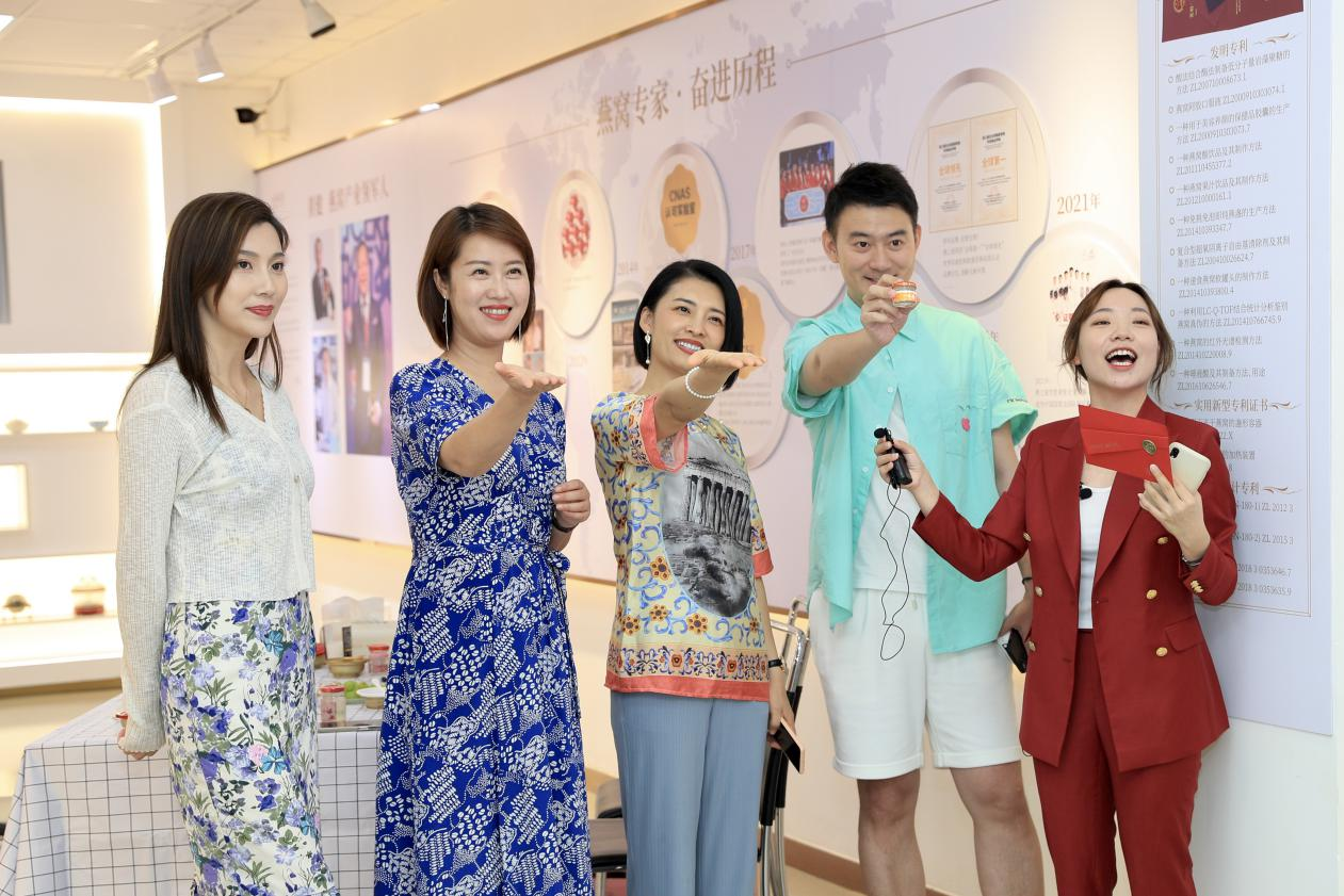 圖:四位主持人一邊品鑒燕之屋·碗燕一邊直播
