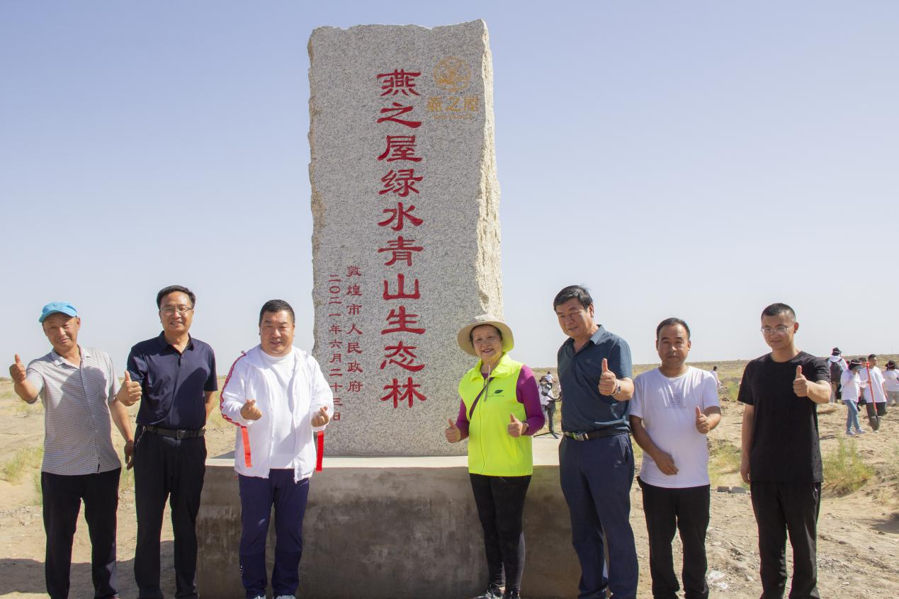 揭碑現(xiàn)場(chǎng),燕之屋總裁李有泉先生表示:“燕之屋攜手綠色生命組織,和各位遠(yuǎn)道而來(lái)的燕之屋粉絲朋友們一起,共同參與到敦煌生態(tài)建設(shè)和環(huán)境保護(hù)的綠色工作當(dāng)中,加入綠色一帶一路的植樹(shù)行列,在這陽(yáng)關(guān)林場(chǎng)種下屬于我們的第一批樹(shù),播種下綠色的新希望。我相信,今天我們?cè)谶@里種下的每一棵樹(shù),都將為敦煌增加森林面積、提高森林質(zhì)量,為實(shí)現(xiàn)我國(guó)碳中和目標(biāo)作出點(diǎn)滴貢獻(xiàn)。我也相信,這也許是各位種下的第一棵樹(shù),但不會(huì)是最后一棵樹(shù),因?yàn)槲覀兌枷M覀兊暮筝?,子子孫孫,能夠生活在藍(lán)天白云、綠水青山的美好環(huán)境當(dāng)中。”