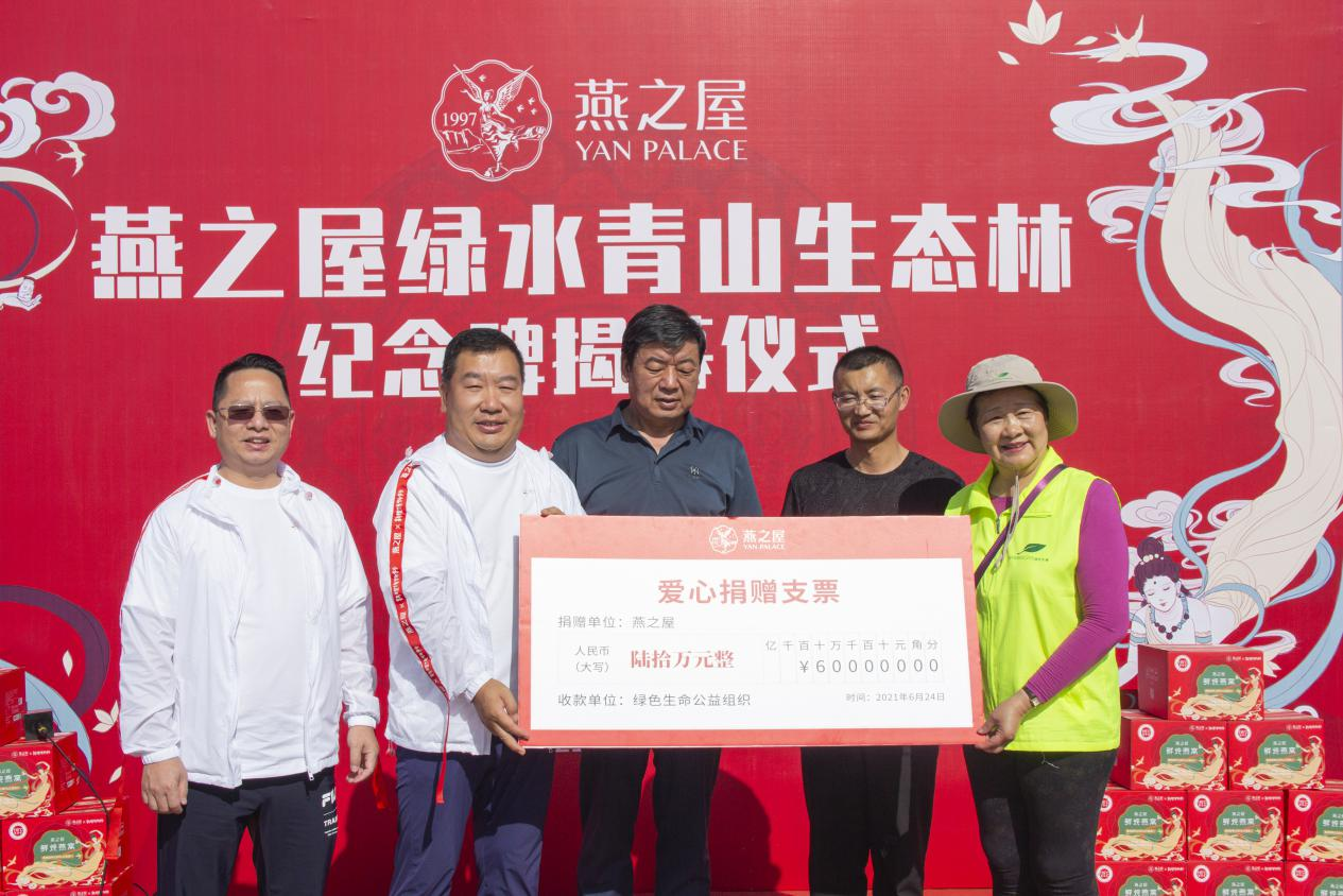 圖:燕之屋總裁李有泉代表燕之屋向NPO綠色生命環(huán)保公益組織捐款人民幣60萬(wàn)元