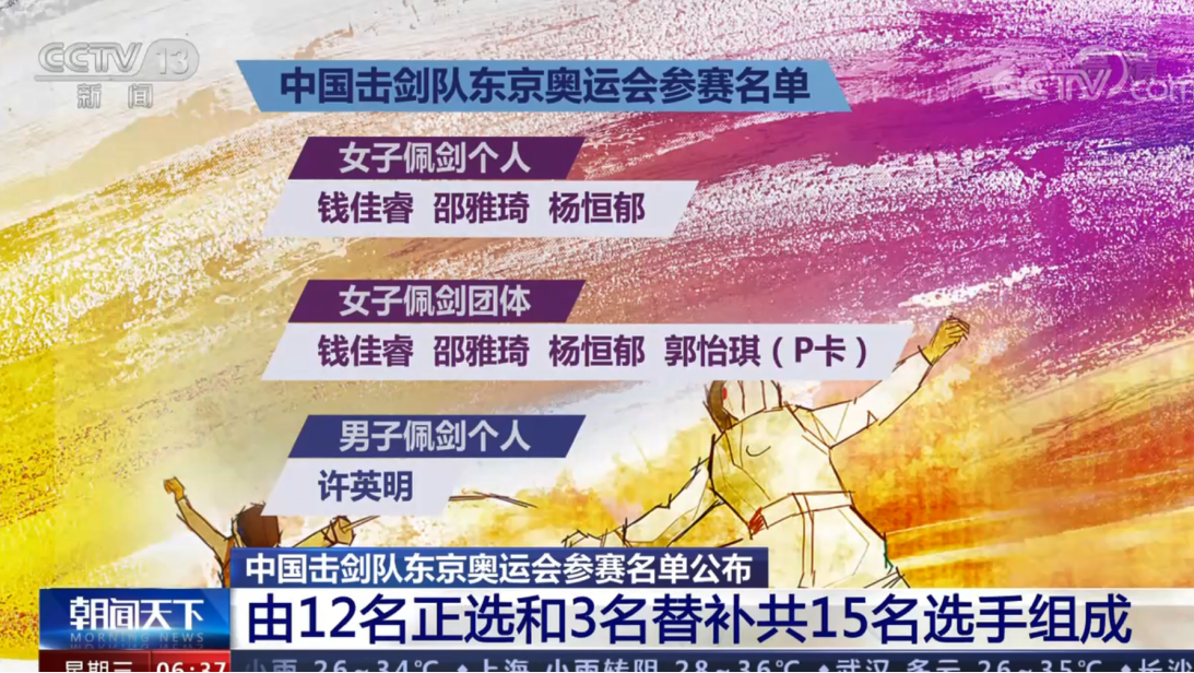 圖:中國國家擊劍隊公布東京奧運參賽名單(部分)
