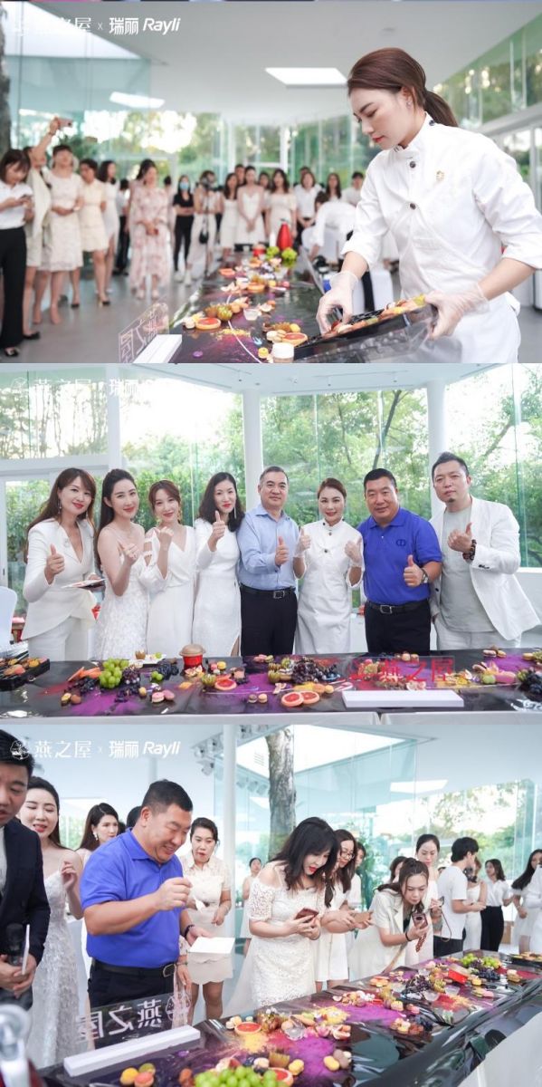 靈魂上的共鳴、氣味上的吸引……每一個(gè)感官都在活動(dòng)中得到升華和滿足。隨著《十二道鋒味·甜品畫布》徐徐展開,星級廚師—陳明媚 (Chef May) 現(xiàn)場制作畫布點(diǎn)心,用燕之屋的高品質(zhì)燕窩和形形色色的精致甜品,構(gòu)建出一幅幅令人驚嘆的畫作,演繹燕窩的十二種吃法,用舌尖上的誘惑讓嘉賓們奢享品質(zhì)味道。