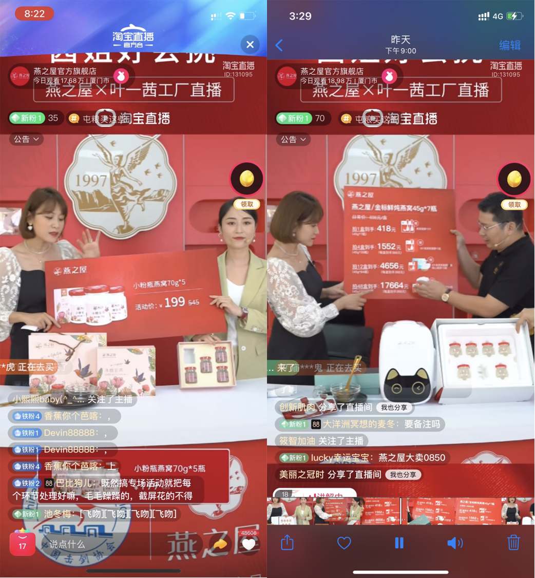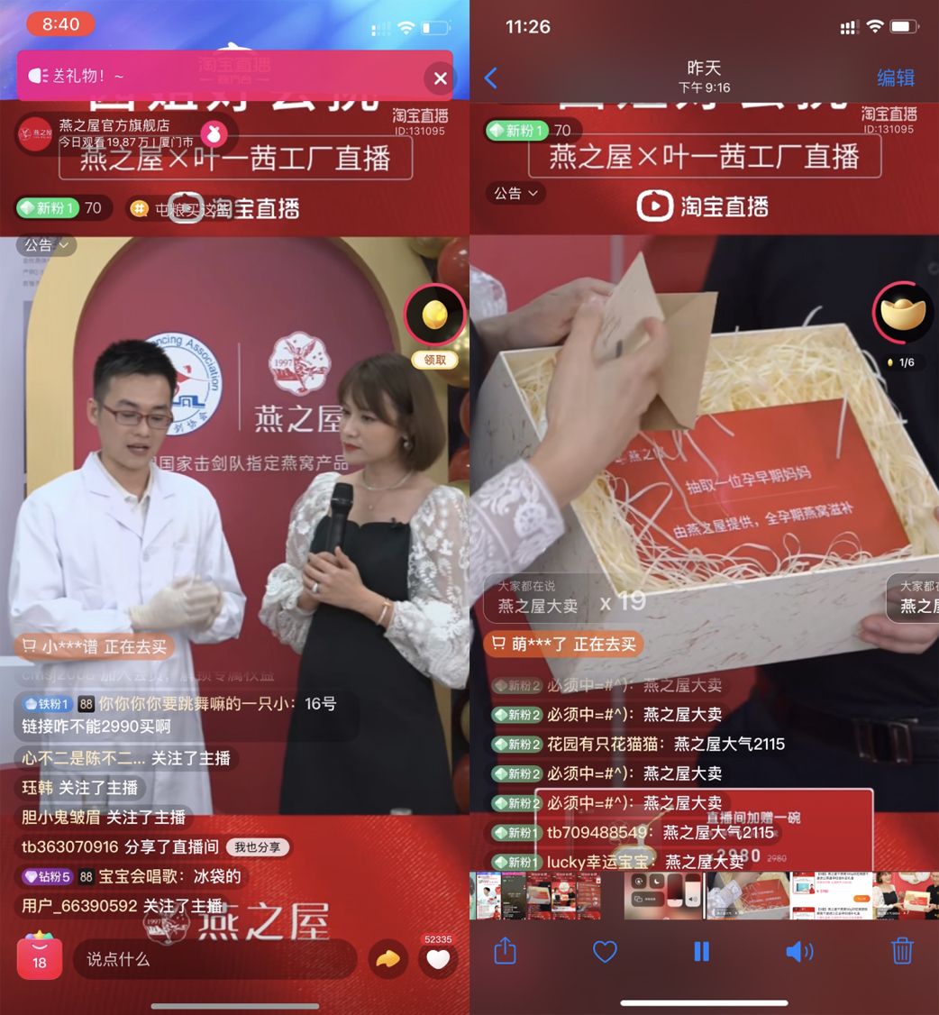 圖:燕之屋X葉一茜工廠直播火爆開播