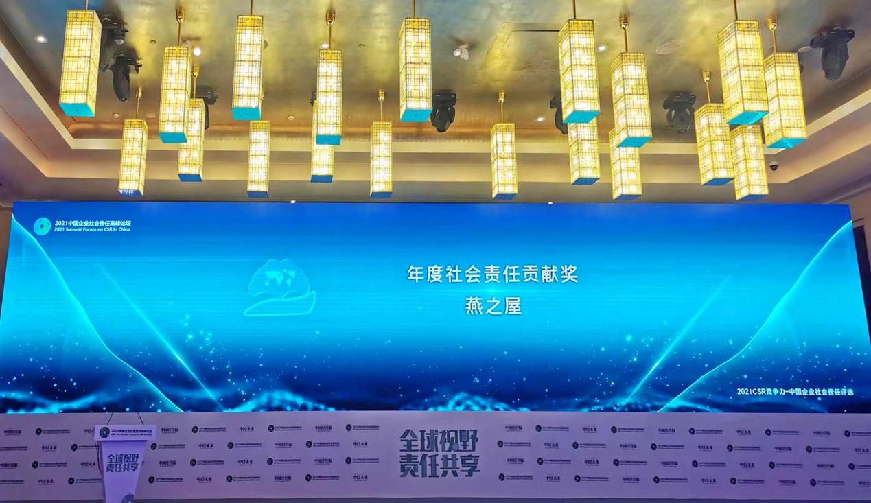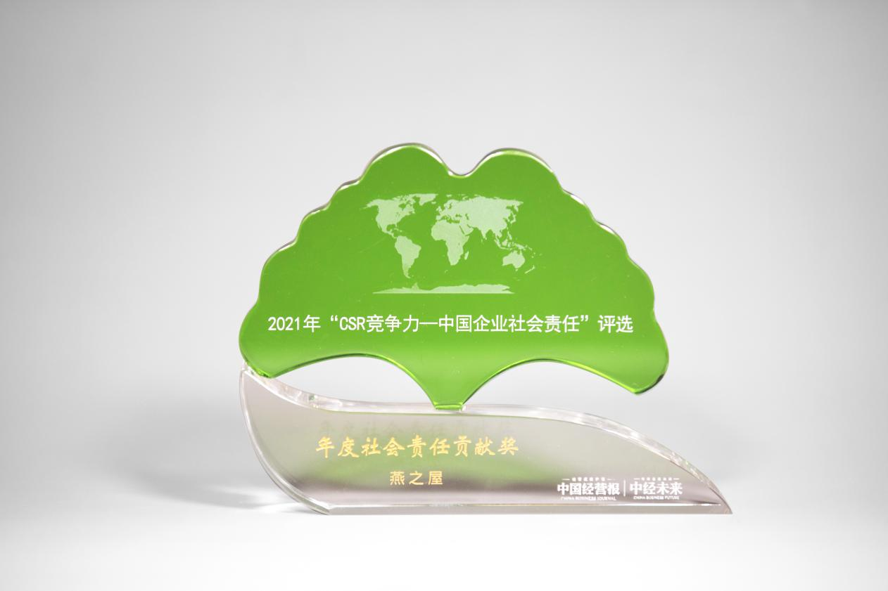 燕之屋榮獲“2021CSR競爭力——中國企業(yè)社會(huì)責(zé)任評選”年度社會(huì)責(zé)任貢獻(xiàn)獎(jiǎng)