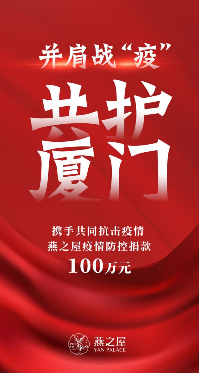 燕之屋捐贈100萬元,支援廈門疫情防控
