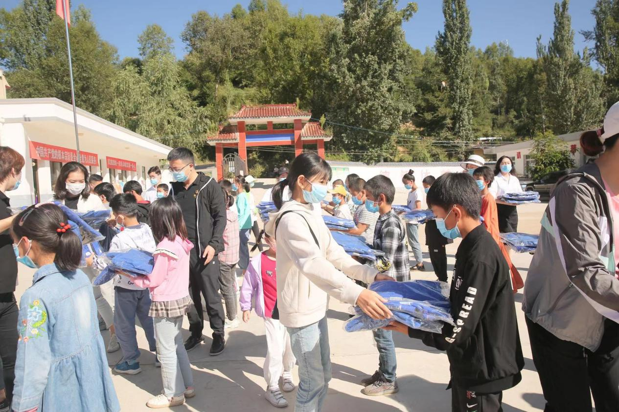 圖:“燕小屋公益成長計劃”向廣河縣槐溝小學(xué)捐贈教學(xué)物資以及校服