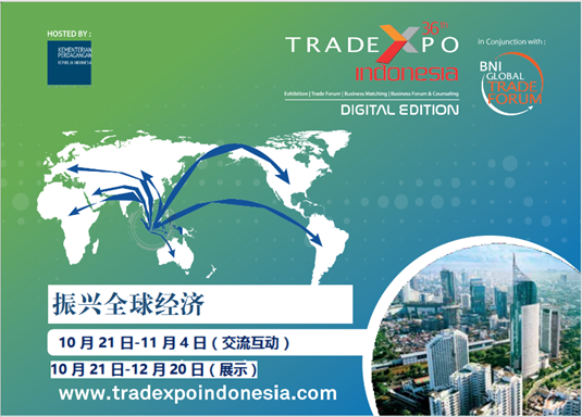 10月21日,第36屆印尼貿(mào)易博覽會(TEI-DE 2021)正式開幕,本屆博覽會以數(shù)字版的形式舉辦,從10月21日持續(xù)到12月20日。印尼貿(mào)易博覽會是一個以企業(yè)對企業(yè)為重點的國際貿(mào)易展覽會,旨在促進印尼優(yōu)質(zhì)產(chǎn)品出口,為印尼出口商和國際買家提供交流平臺。針對本屆印尼貿(mào)易博覽會(TEI-DE 2021),印尼貿(mào)易部副部長表示:“博覽會對于提升印尼與中國雙面關(guān)系、促進雙邊貿(mào)易起著重要作用,目前印尼與中國雙邊經(jīng)濟呈穩(wěn)定增長態(tài)勢并將持續(xù)增長。各方要繼續(xù)發(fā)揮協(xié)同作用,通過舉辦此類活動,促進雙邊貿(mào)易額增長,促進雙方長足發(fā)展。”