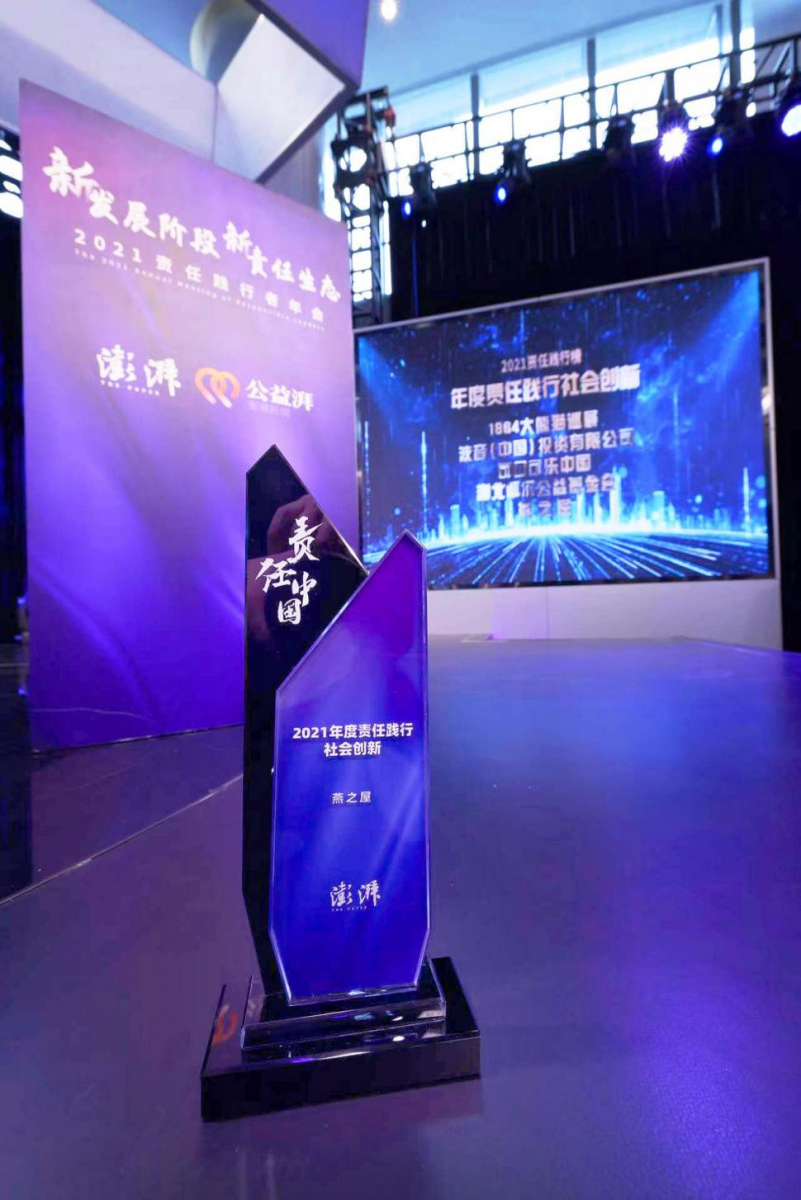 圖:燕之屋榮獲澎湃新聞“2021年度責任踐行社會創(chuàng)新”獎項