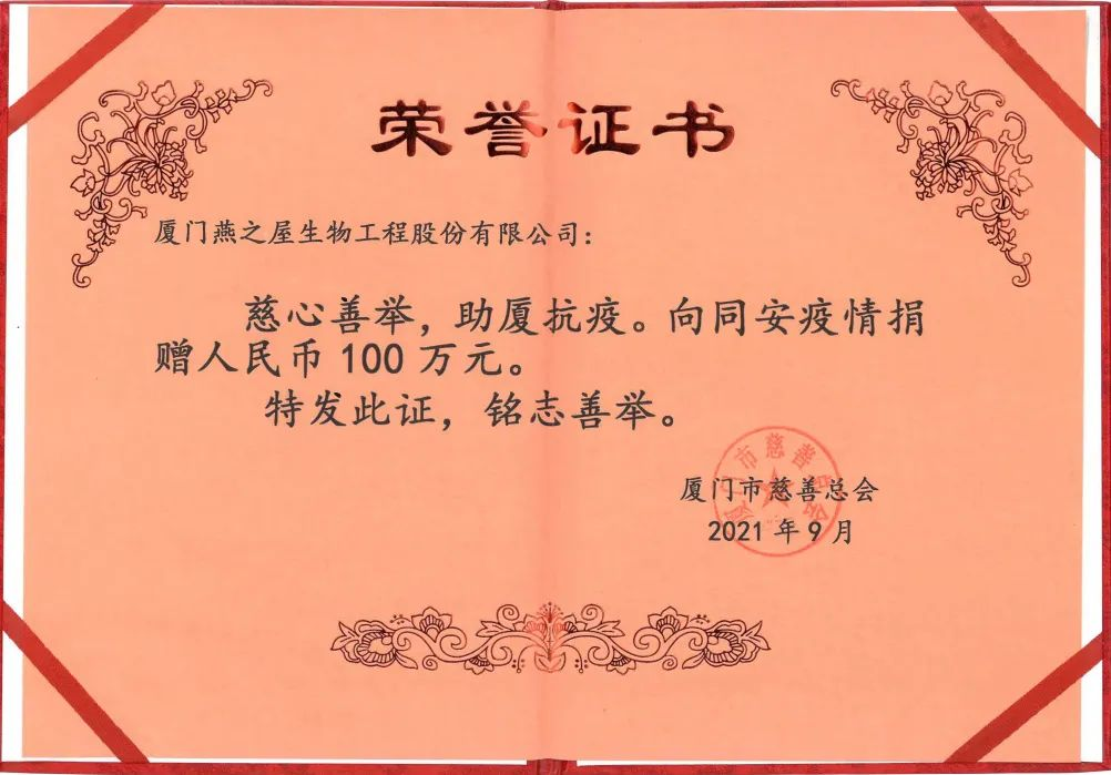 燕之屋落實企業(yè)擔當,在抗疫救災防護中積極展開行動。今年8月,特大暴雨襲擊河南期間,燕之屋及時響應捐贈100萬,助力河南新鄉(xiāng)災后防疫;9月份,廈門疫情爆發(fā)期間,燕之屋向廈門市慈善總會捐款100萬元人民幣,并攜手金龍客車捐贈福建首輛移動核酸采樣車,還向正在隔離的孕婦、產婦贈送燕窩,助力“戰(zhàn)疫媽媽”迎接新生;10月份,在廈門走出疫情陰霾后,燕之屋為抗疫一線醫(yī)護人員捐贈面膜類產品,感恩并助力醫(yī)護人員恢復狀態(tài)。